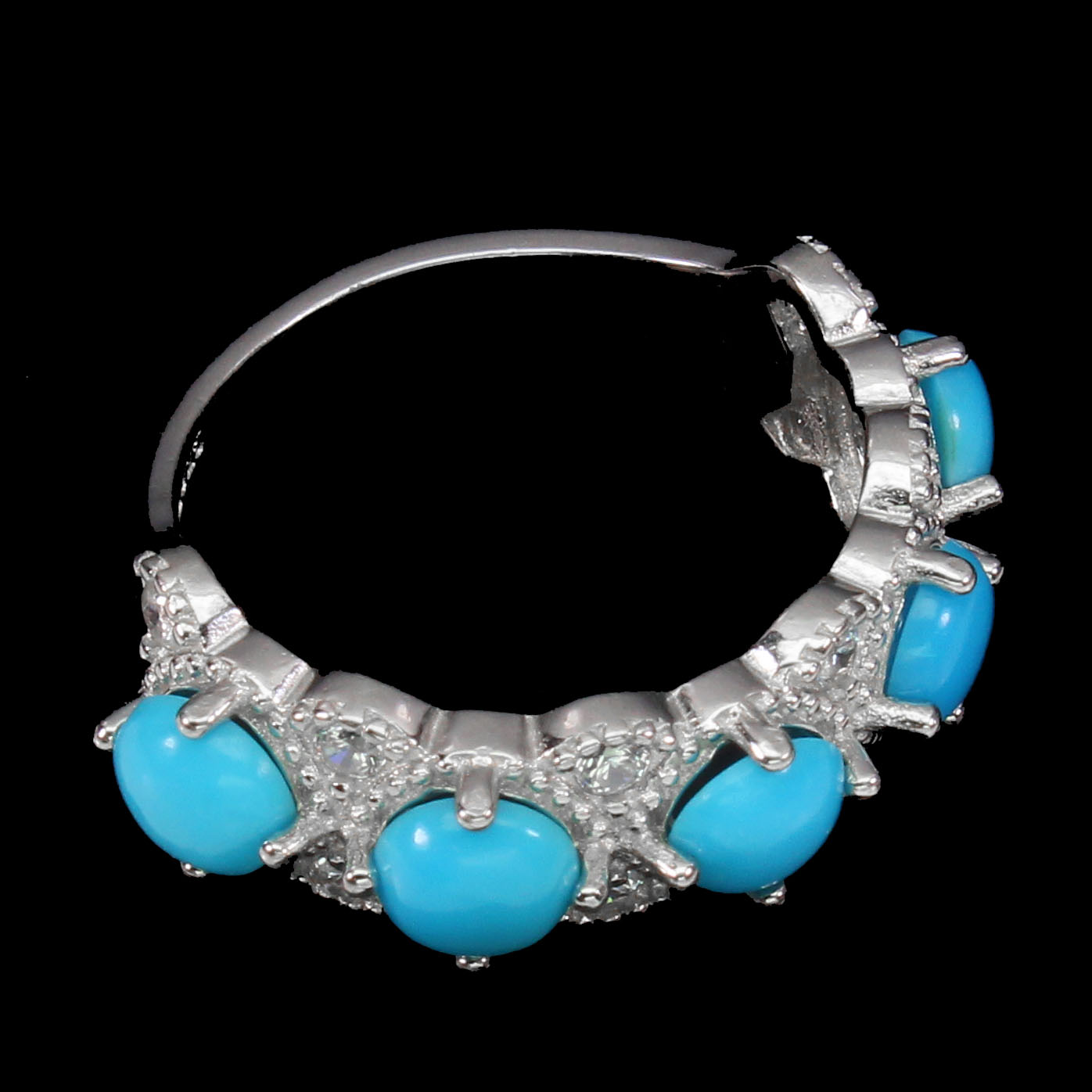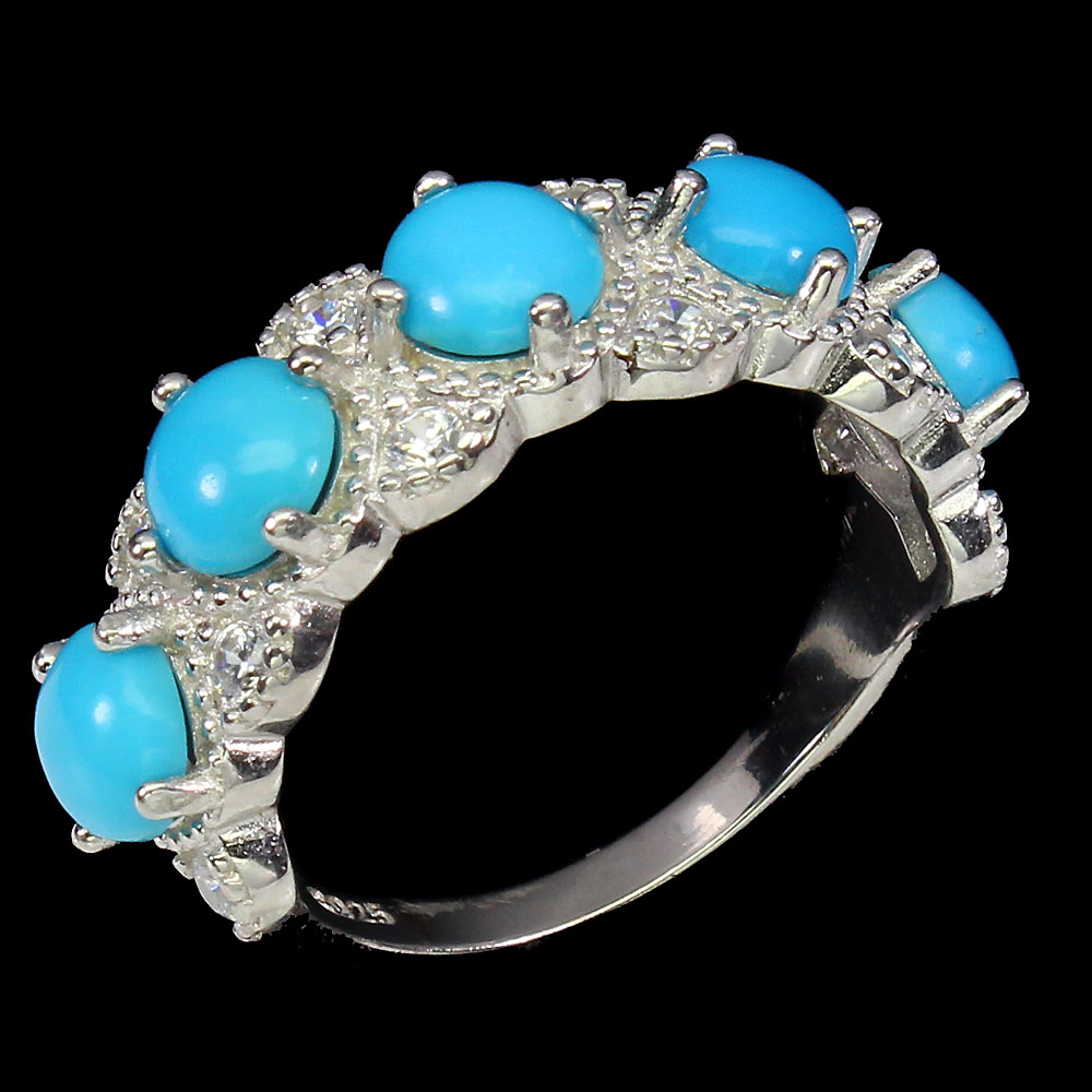 Unheated Round Blue Turquoise 5mm Simulated Cz 925 Sterling Silver Ring Size 7