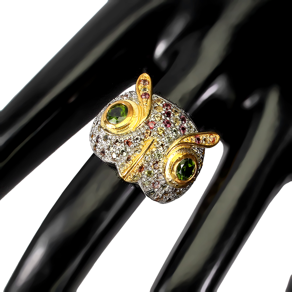 Unheated Round Green Chrome Diopside Sapphire 925 Sterling Silver Owl Ring 8