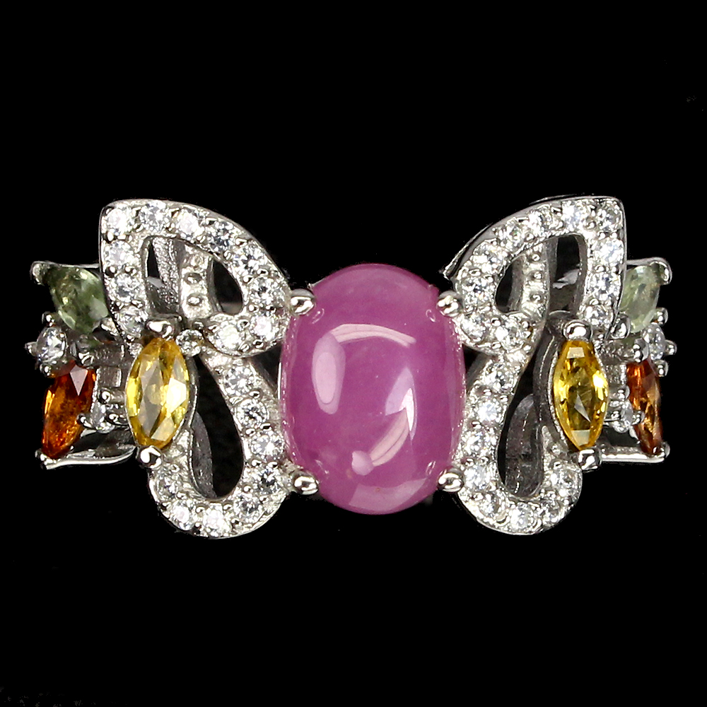 * STONE 4.0 X 2.0 TO 8.0 X 6.0 MM. * CZ 1.0 TO 1.5 MM. * RING SIZE 6.5 * FACE RING 22.0 X 11.0 MM.