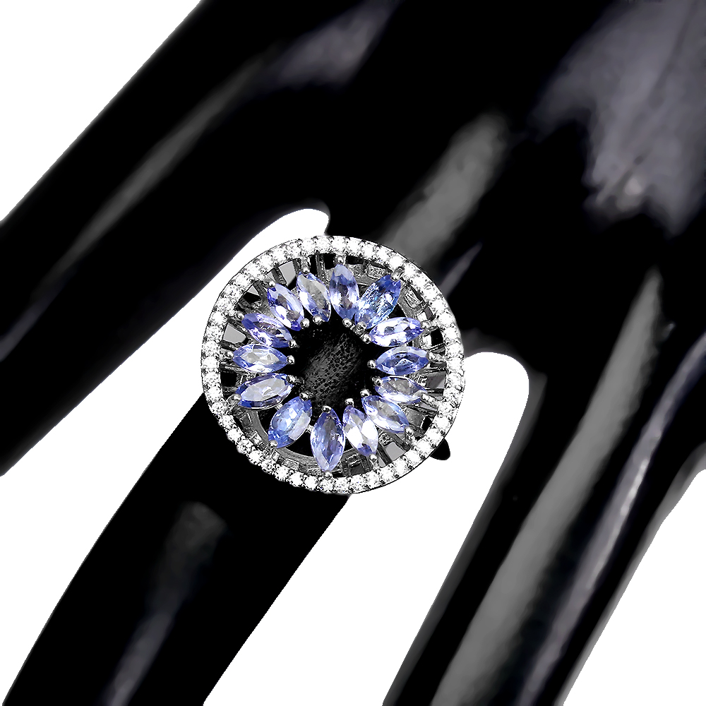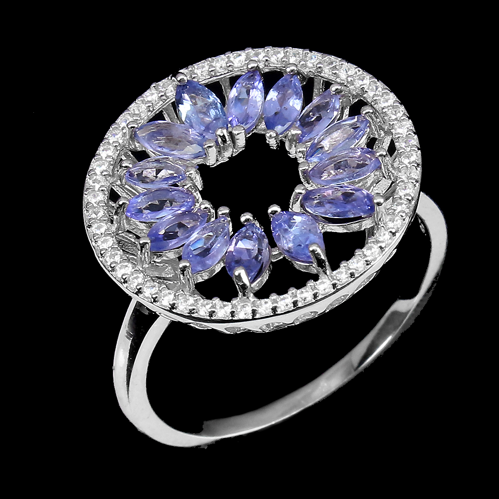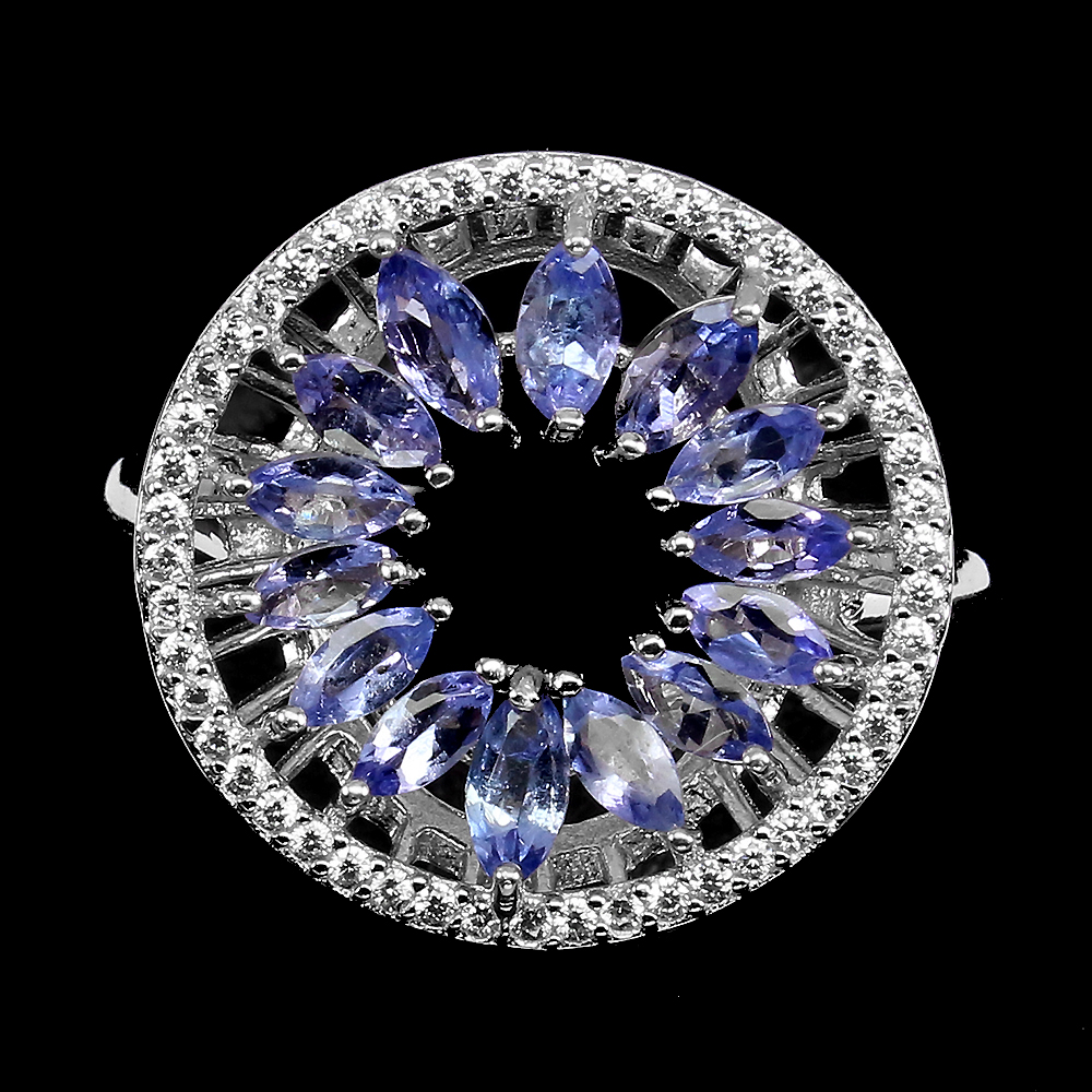 Unheated Marquise Blue Tanzanite 5x2.5mm Cz 925 Sterling Silver Ring Size 9.5