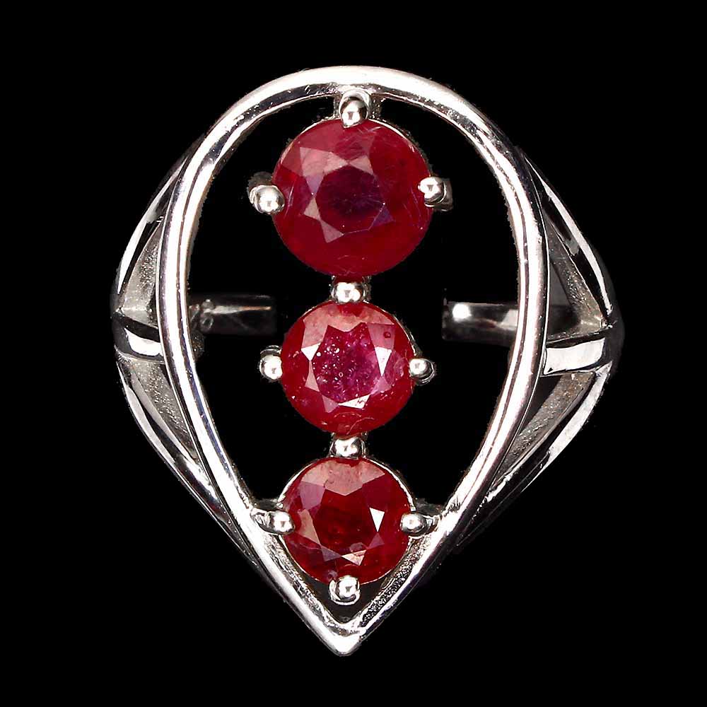 Round Red Ruby 6mm 14K White Gold Plate 925 Sterling Silver Ring Size 8.5
