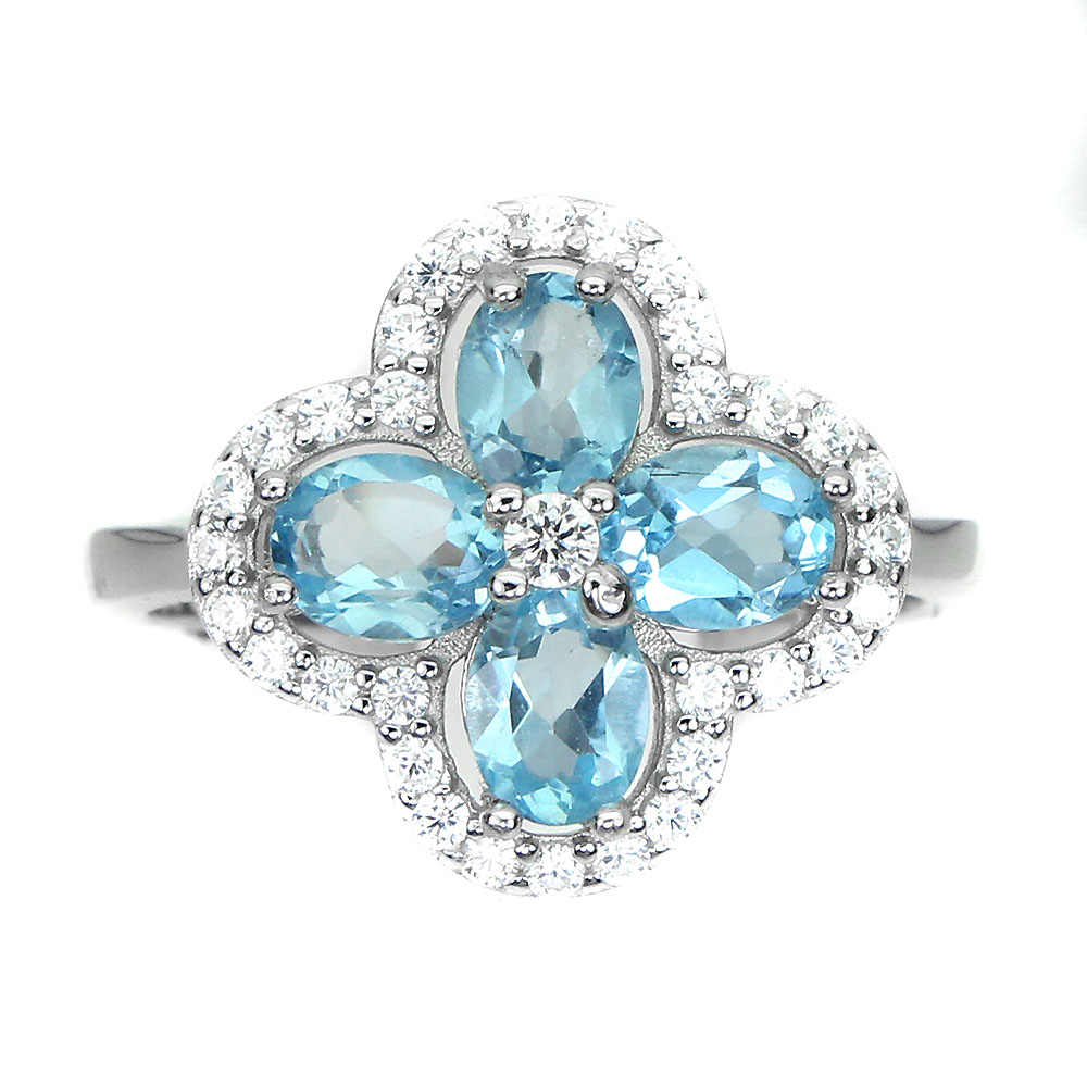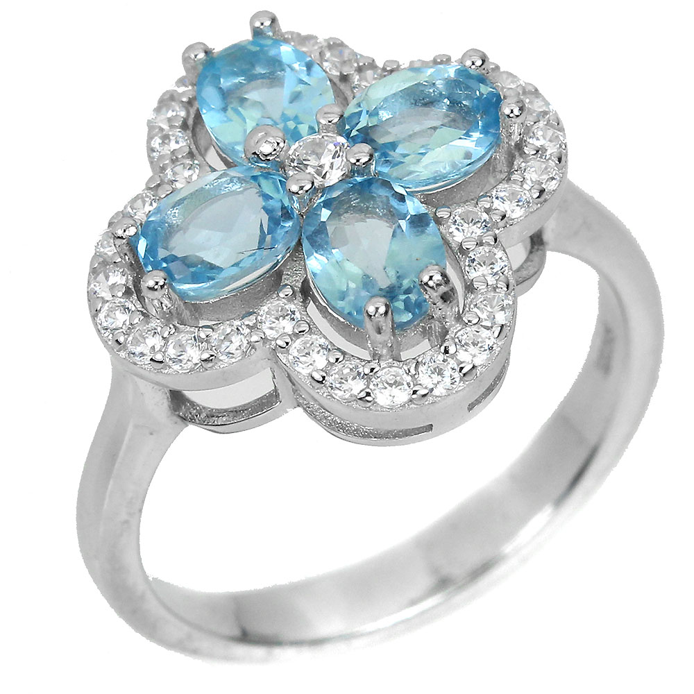 Irradiated Oval Swiss Blue Topaz 5x4mm Simulated Cz 925 Sterling Silver Ring 9.5