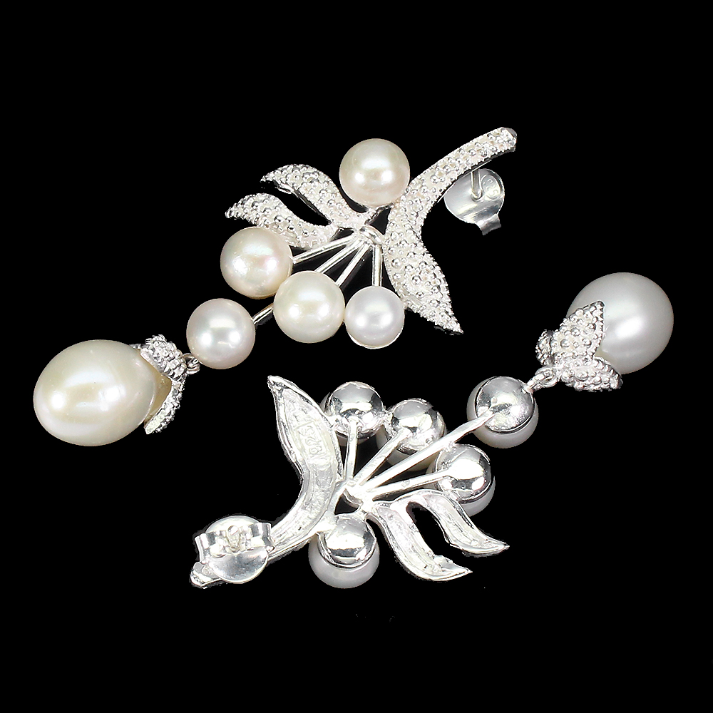 Baroque Creamy White Pearl 11x9mm 925 Sterling Silver Earrings