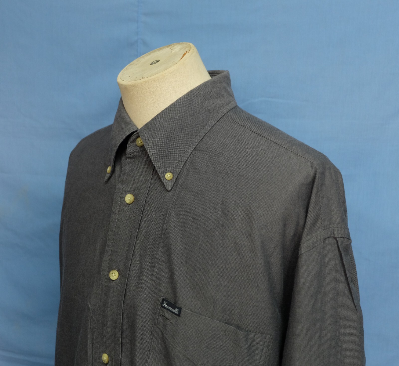 Excellent Faconnable Button-Down solid gray men's shirt long sleeve with buttons front authenticity guaranteed. The shirt is pre-owned still in excellent condition, no holes, tears, stains. It has been laundered clean and fresh ready to wear. The shirt has button-down collar, single chest pocket on left with 7 buttons closure on front. The color is gray with solid pattern. Fabric is 100% oxford cotton. Don't miss out cool and awesome shirt.