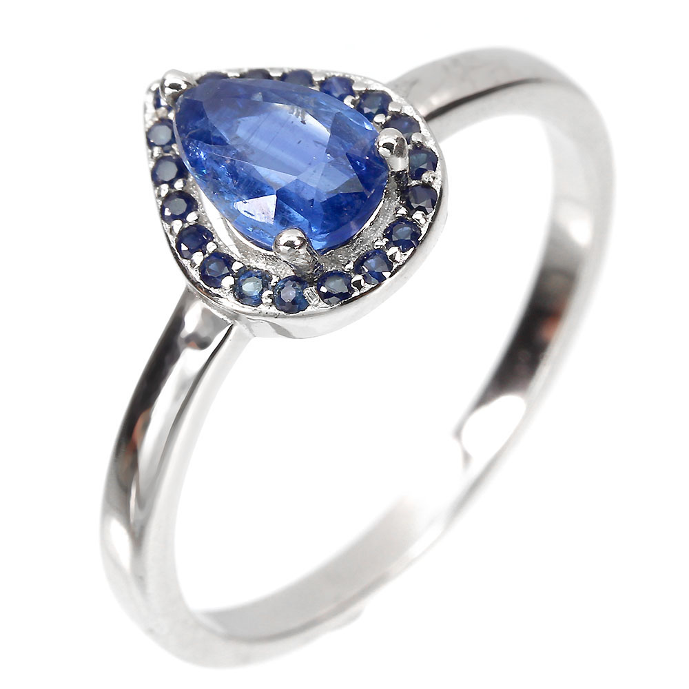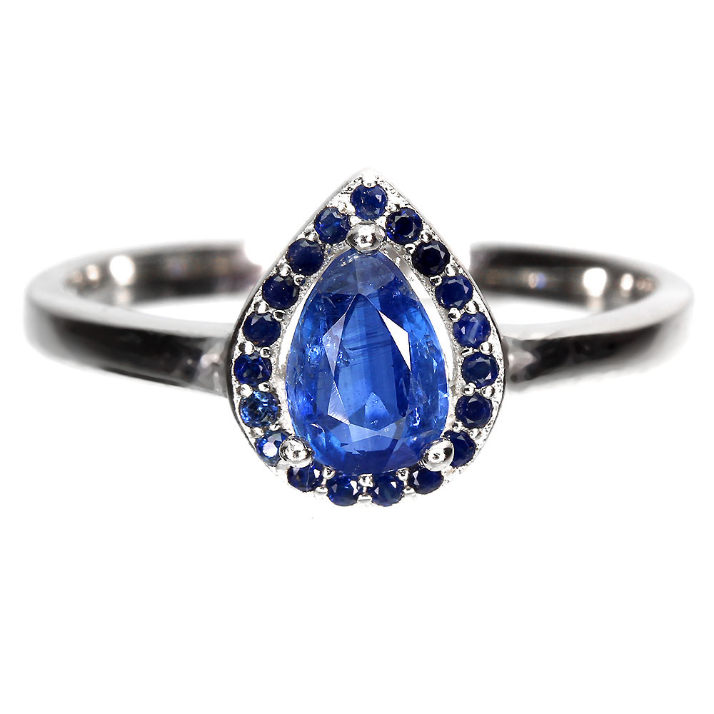 Unheated Pear Kyanite 7x5mm Blue Sapphire Diamond Cut 925 Sterling Silver Ring 8