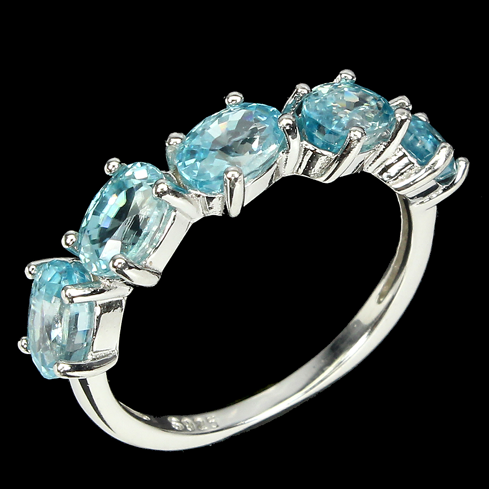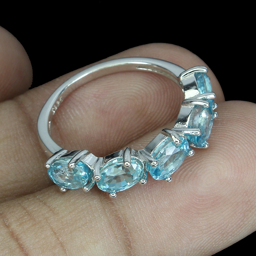 Heated Oval Blue Zircon 6x4mm 14K White Gold Plate 925 Sterling Silver Ring 8