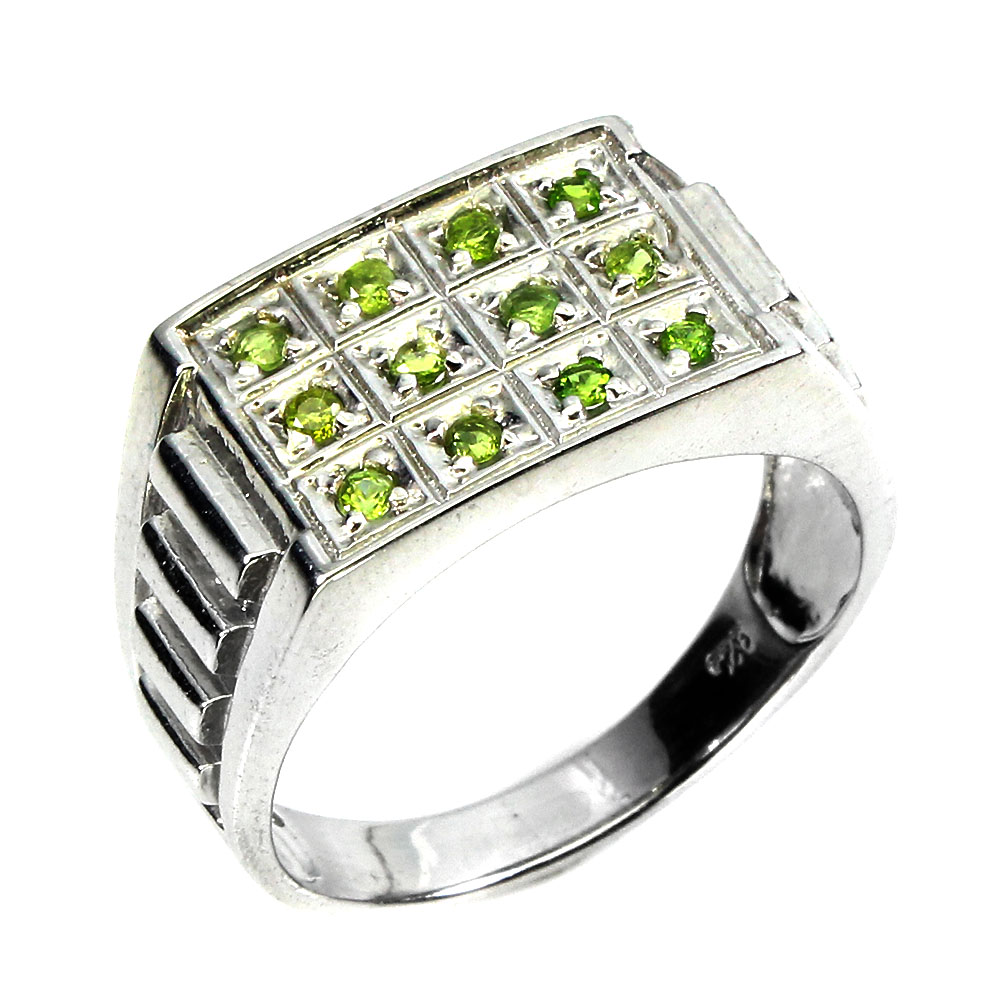 Unheated Round Chrome Diopside 1.5mm White Gold Plate 925 Sterling Silver Ring