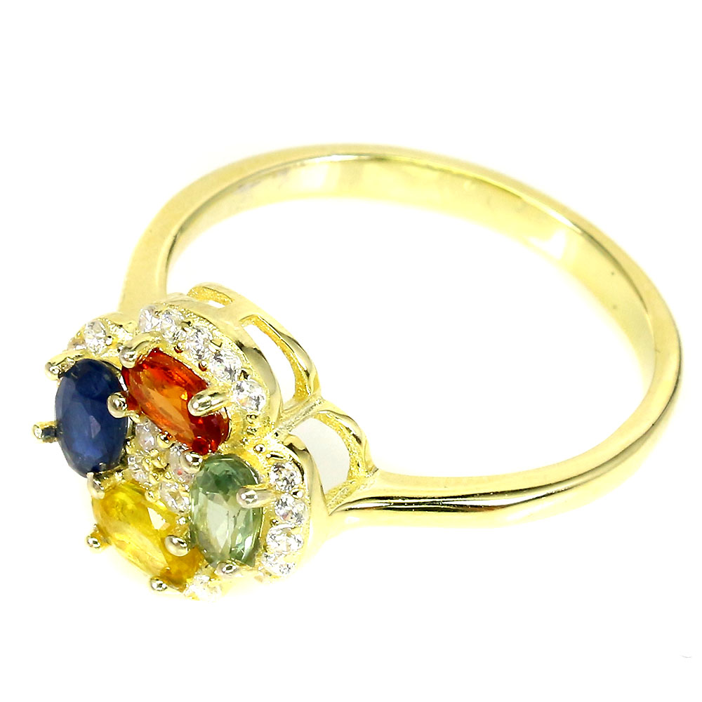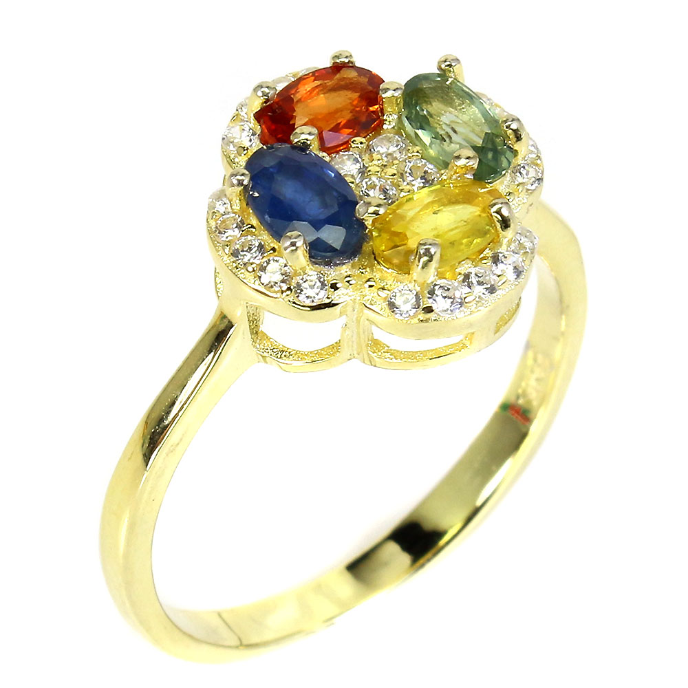Heated Oval Multi Color Sapphire 5x3mm Simulated Cz 925 Sterling Silver Ring 8.5