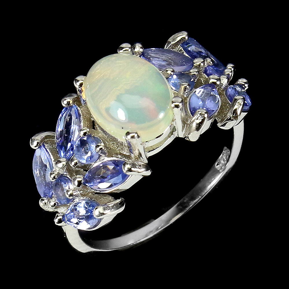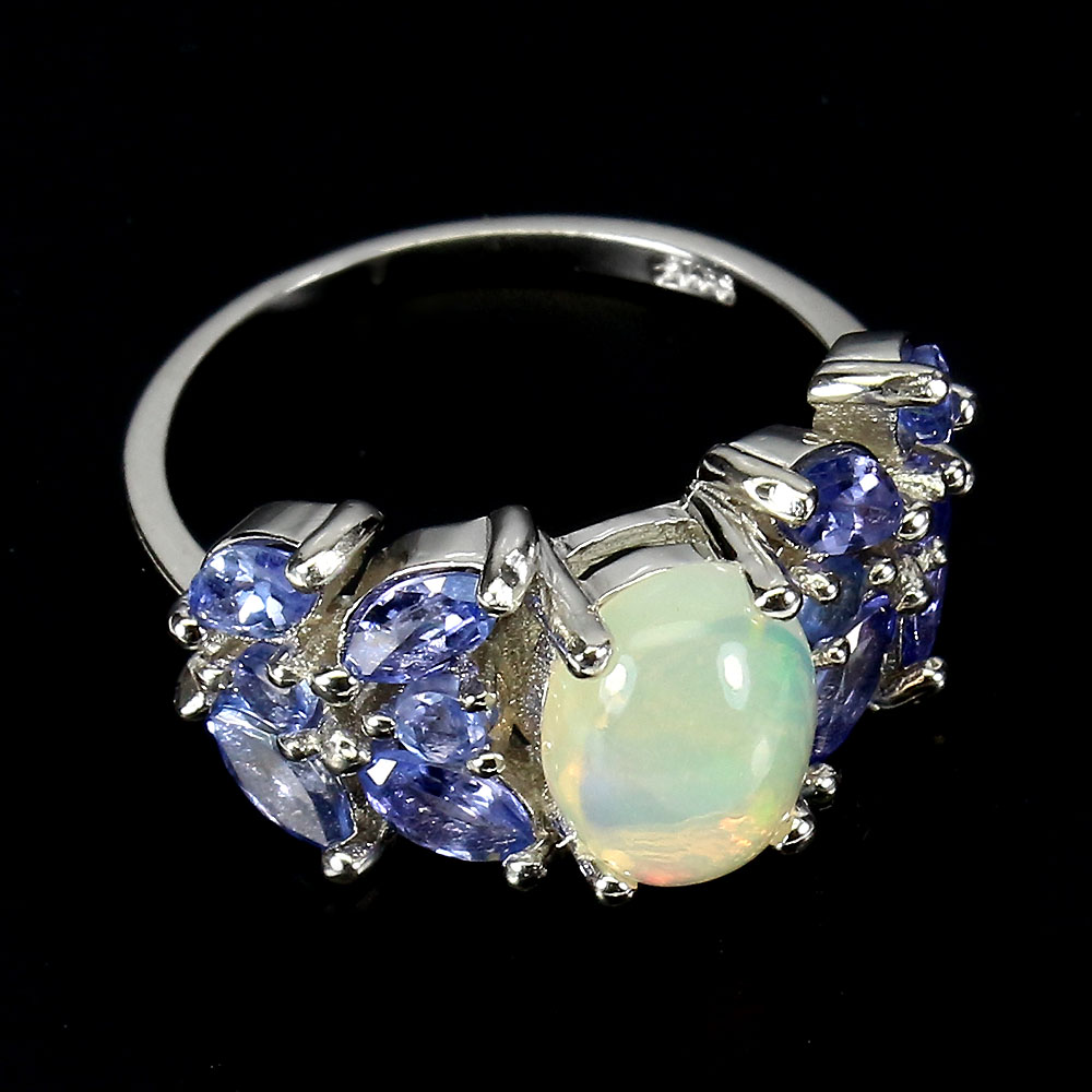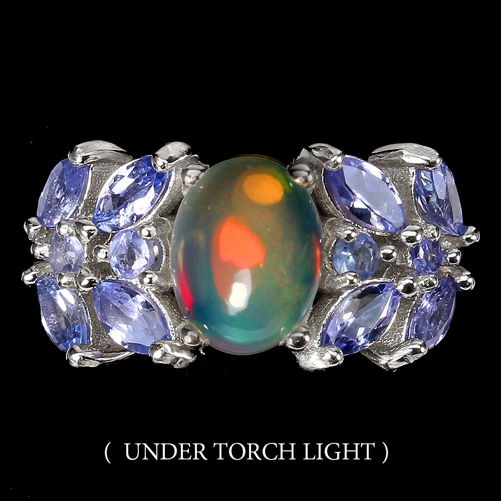 Unheated Oval Fire Opal Rainbow 9x7mm Tanzanite 925 Sterling Silver Ring Sz 7
