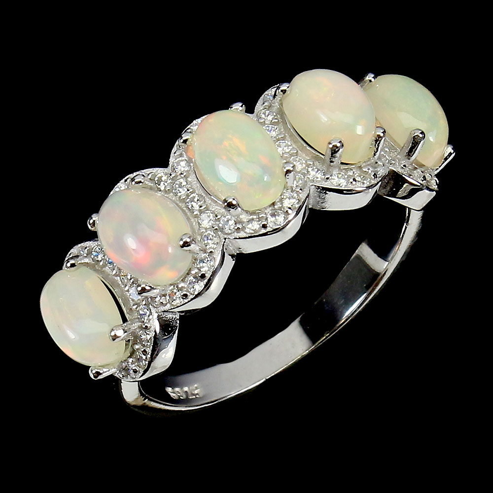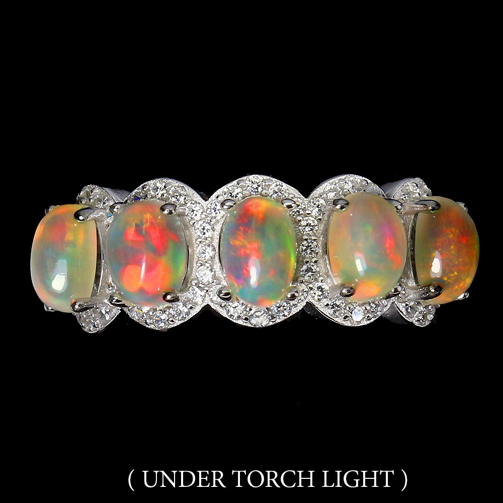 Unheated Oval Fire Opal Rainbow 6x4mm Simulated Cz 925 Sterling Silver Ring 7.5