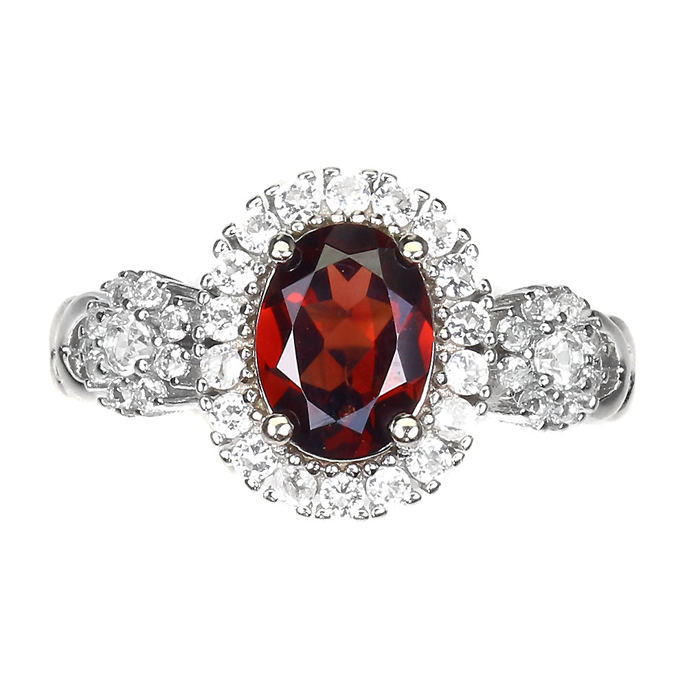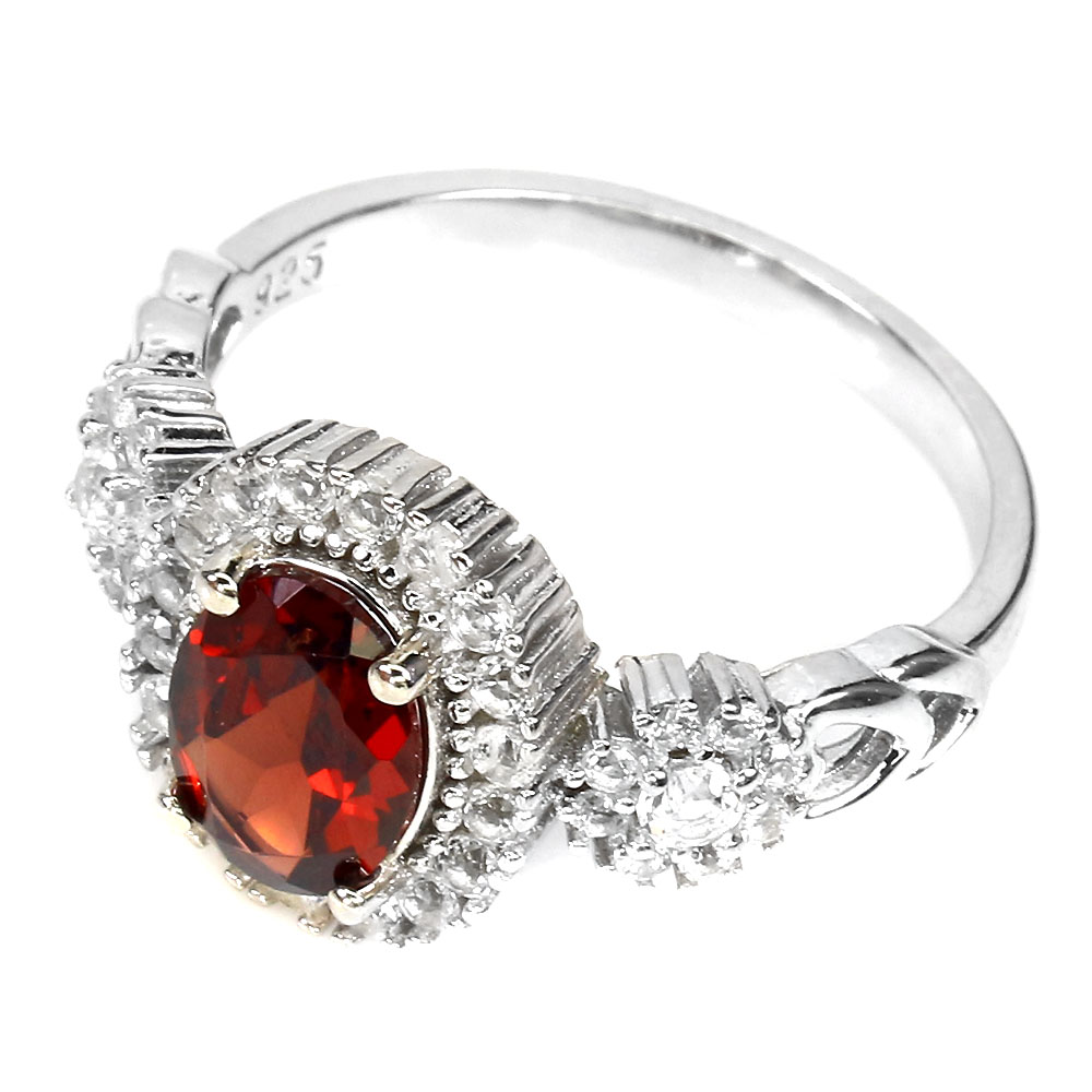 Unheated Oval Mozambique Garnet 8x6mm White Topaz 925 Sterling Silver Ring Sz 7
