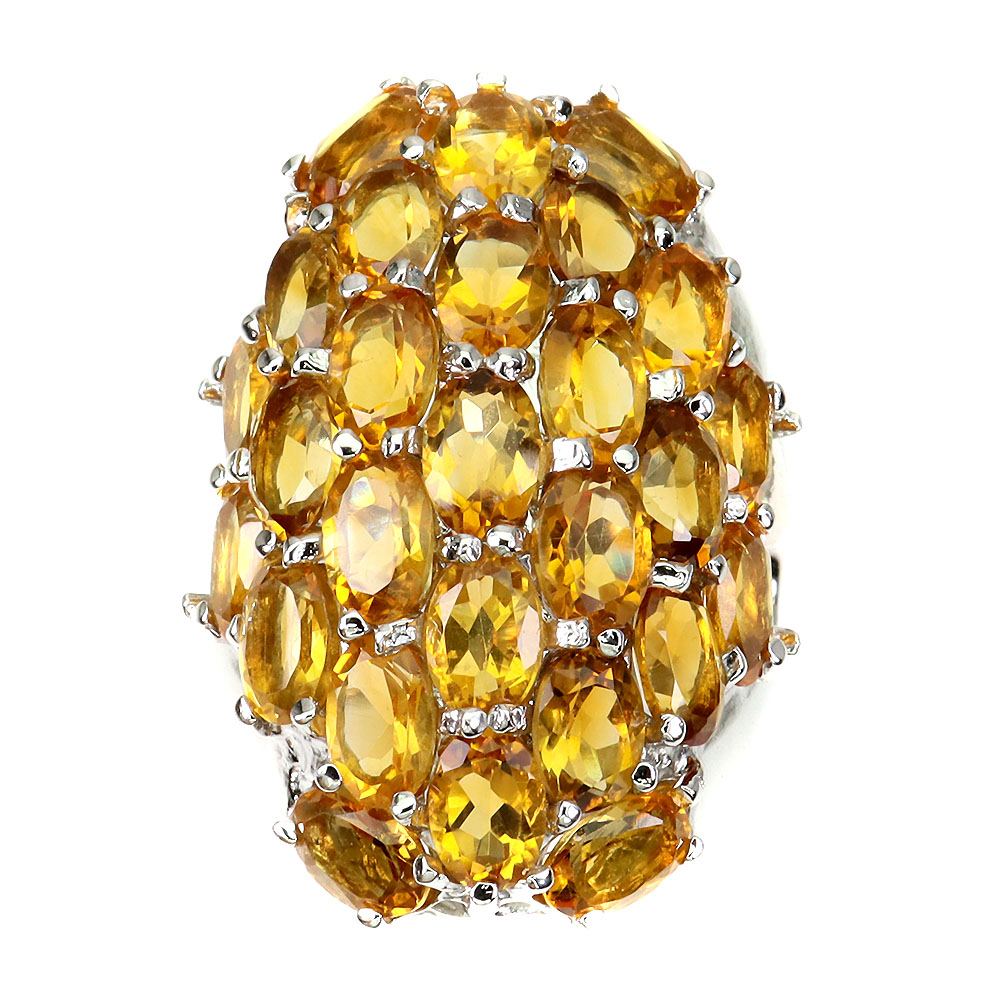 Unheated Oval Citrine 6x4mm 14K White Gold Plate 925 Sterling Silver Ring Size 7