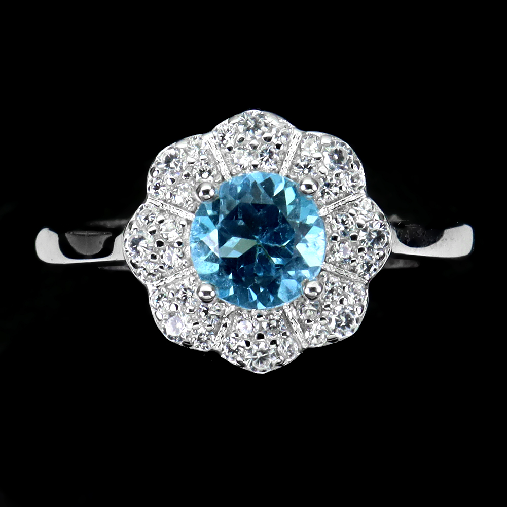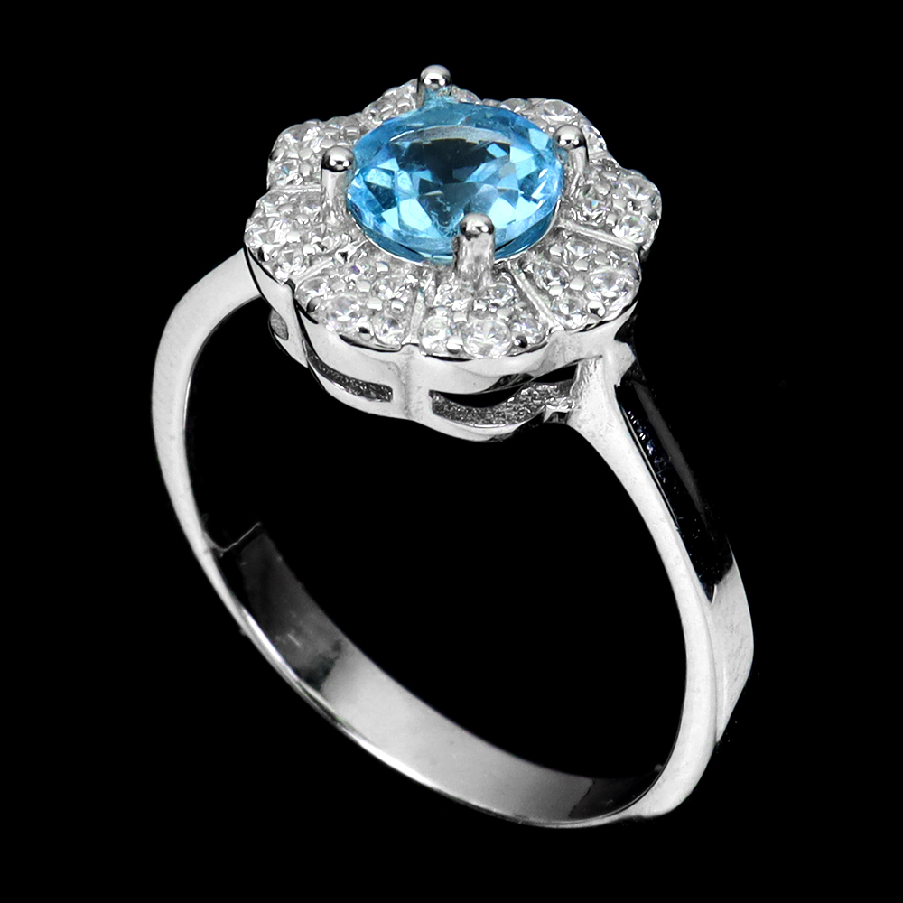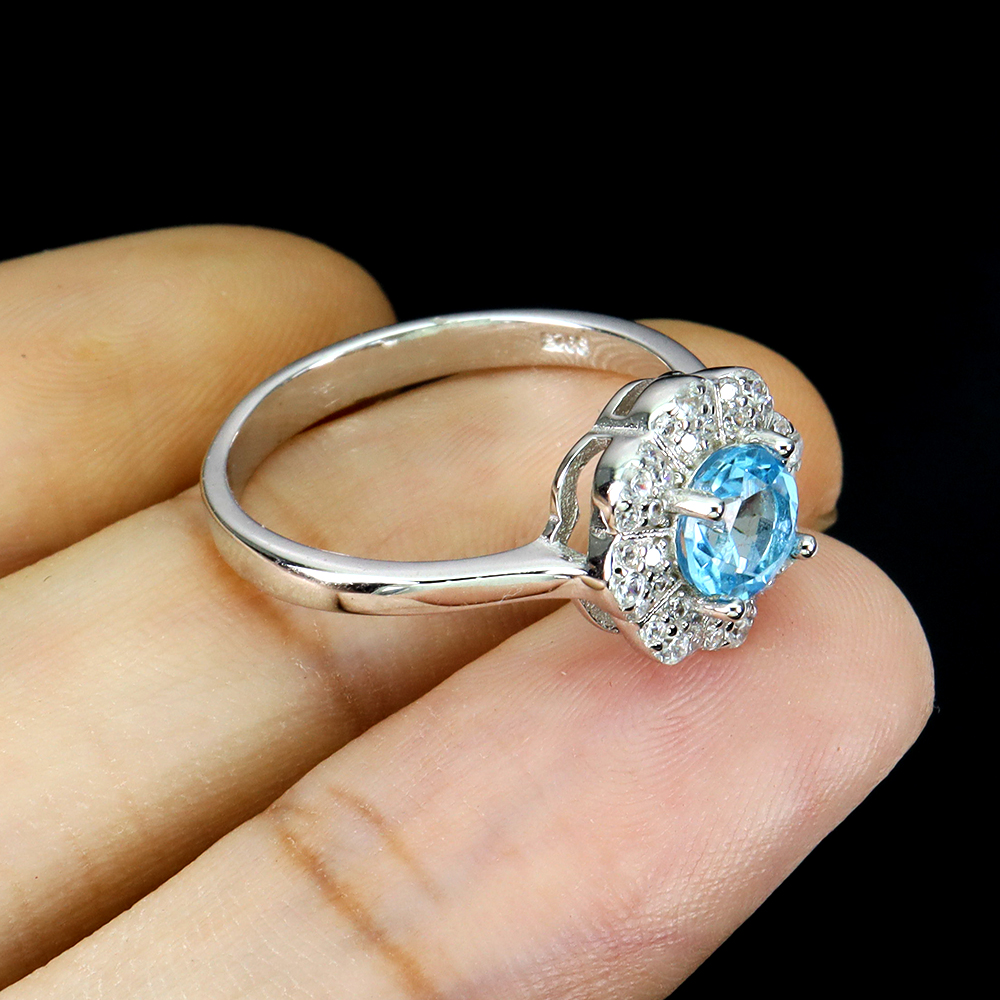 Irradiated Round Sky Blue Topaz 6mm Simulated Cz 925 Sterling Silver Ring 6.5