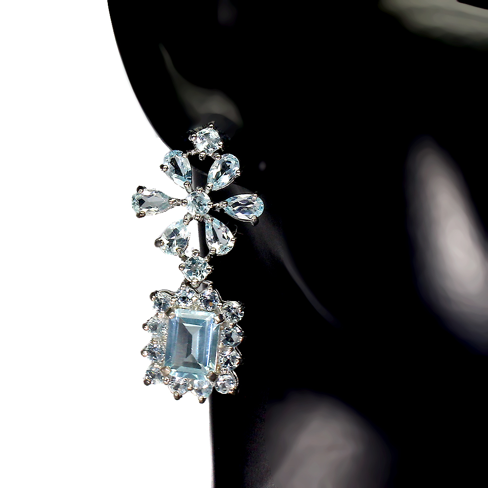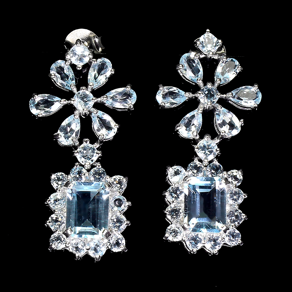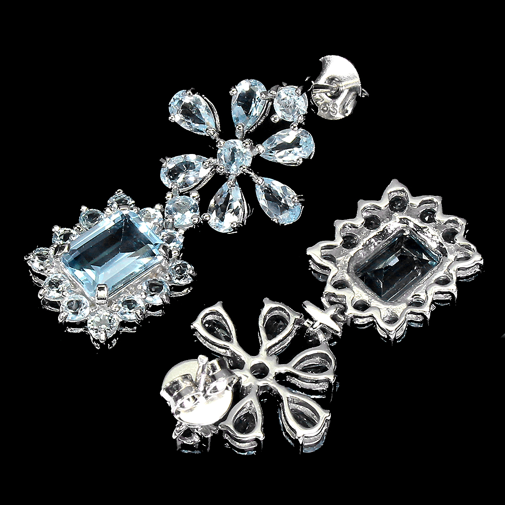 Octagon Sky Blue Topaz 8x6mm 14K White Gold Plate 925 Sterling Silver Earrings
