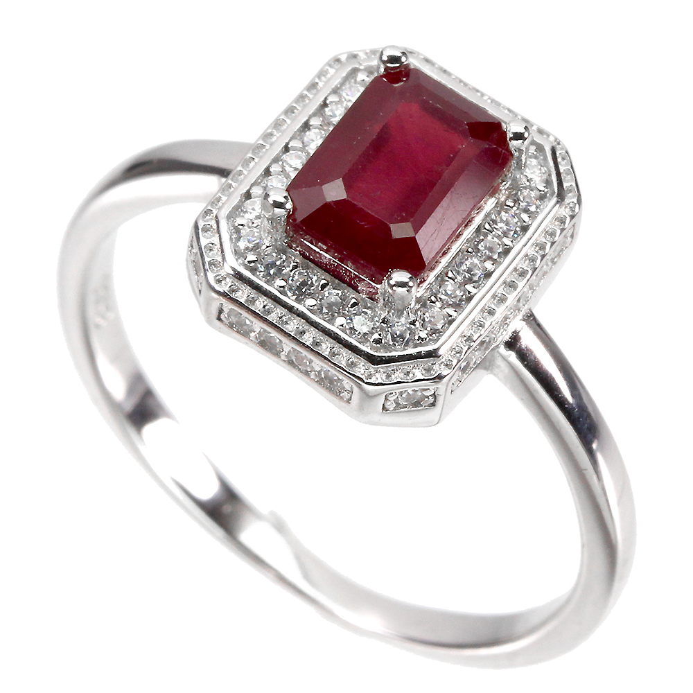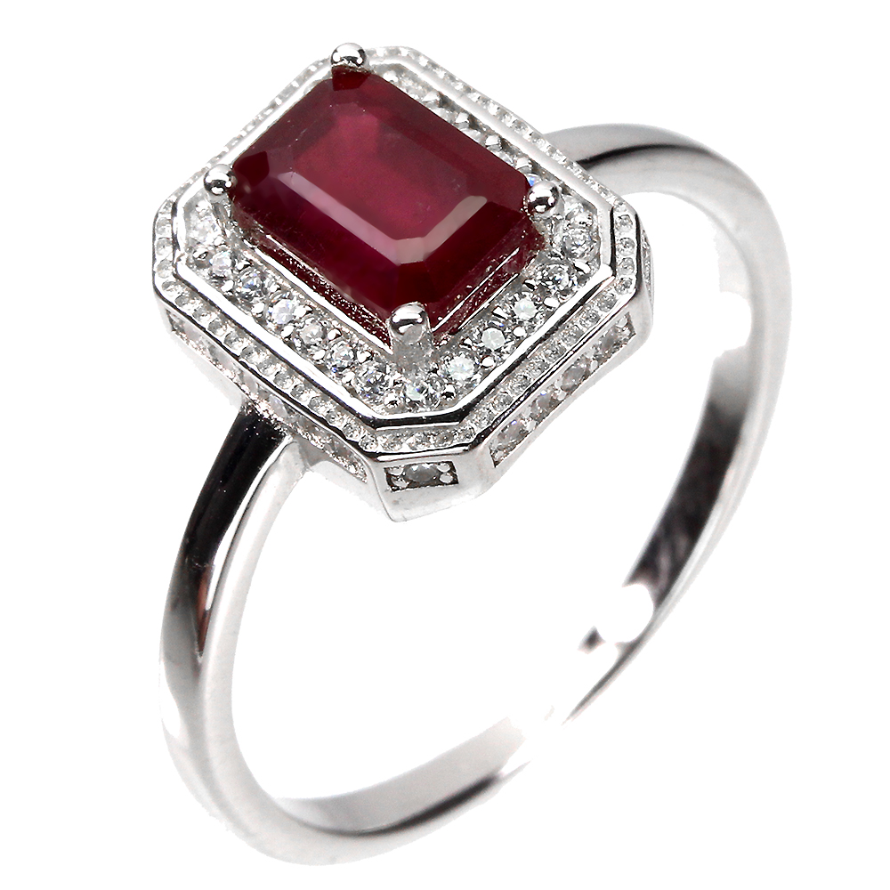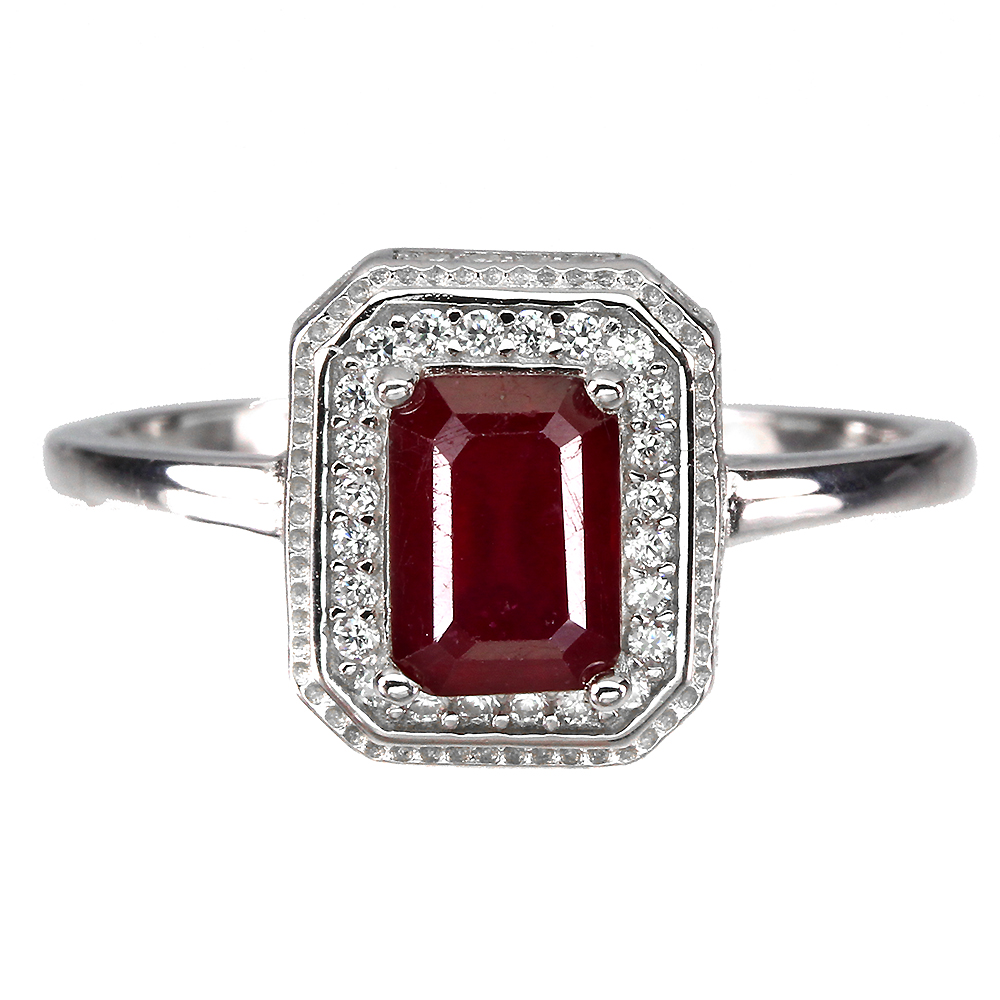 Heated Octagon Red Ruby 7x5mm Simulated Cz 925 Sterling Silver Ring Size 8