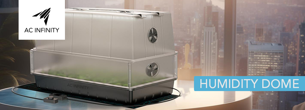 A domed germination kit designed to promote successful plant growth and propagation by producing a high-humidity environment. Included within the kit are the humidity dome, grow light bars, and the seedling mat. The transparent dome allows for optimal light saturation while offering easy observation of your plants’ progress. Adjustable vents on the dome offer complete humidity control through smooth and effortless rotation. Make further adjustments with the optional height extender, which can be applied to elevate the dome for cloning projects. The drip and seedling trays fit seamlessly to support up to 40 seedlings while catching excess water and preventing leaks in the process.
