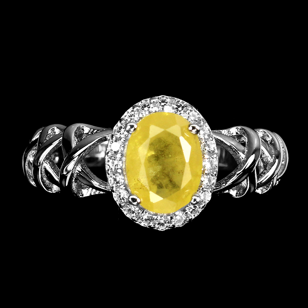 Oval Yellow Sapphire 8x6mm Cz 14K White Gold Plate 925 Sterling Silver Ring