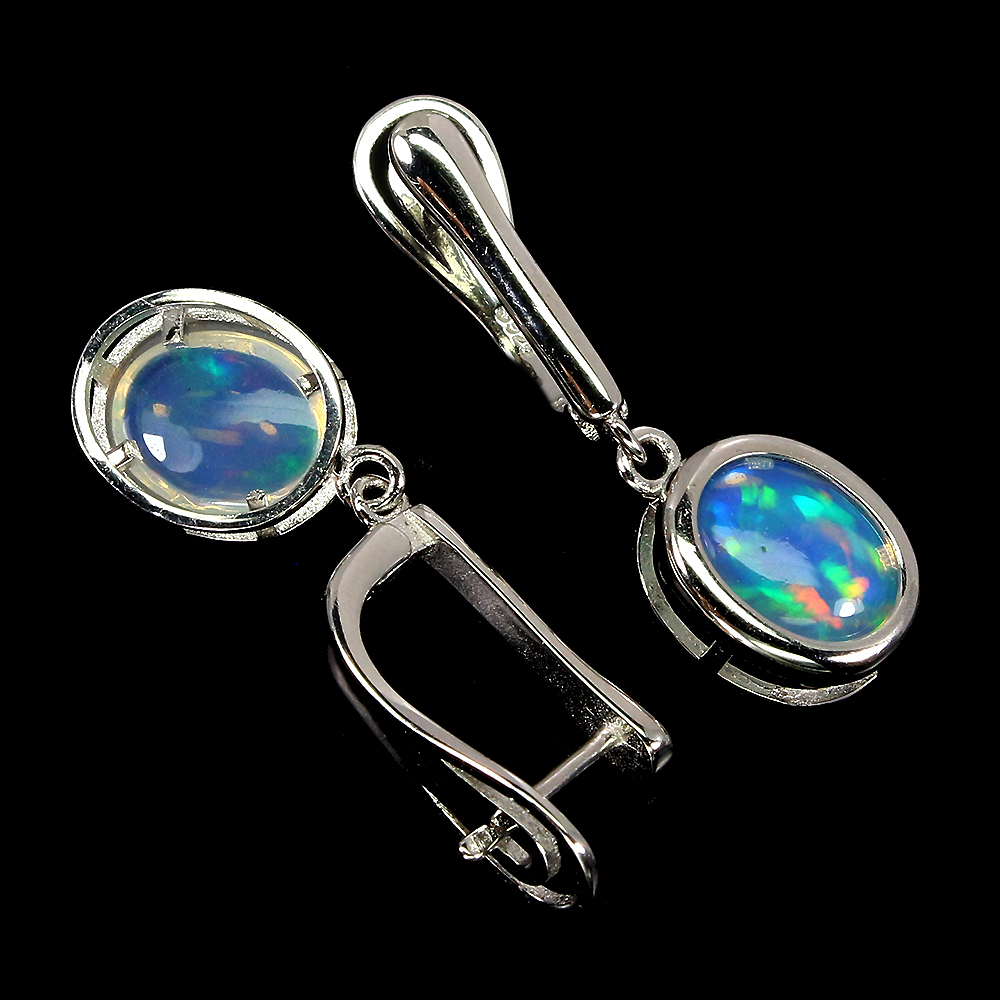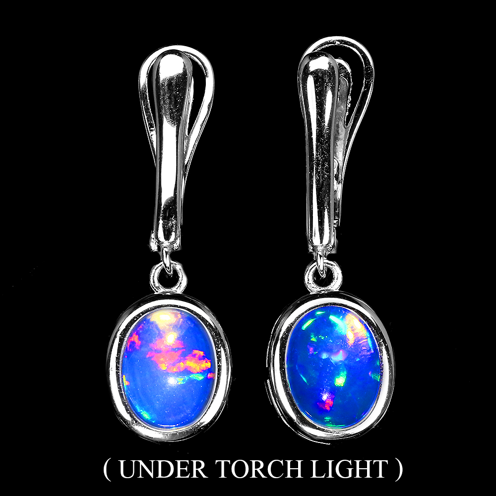 Unheated Oval Fire Opal Rainbow Full Flash 10x8mm 925 Sterling Silver Earrings