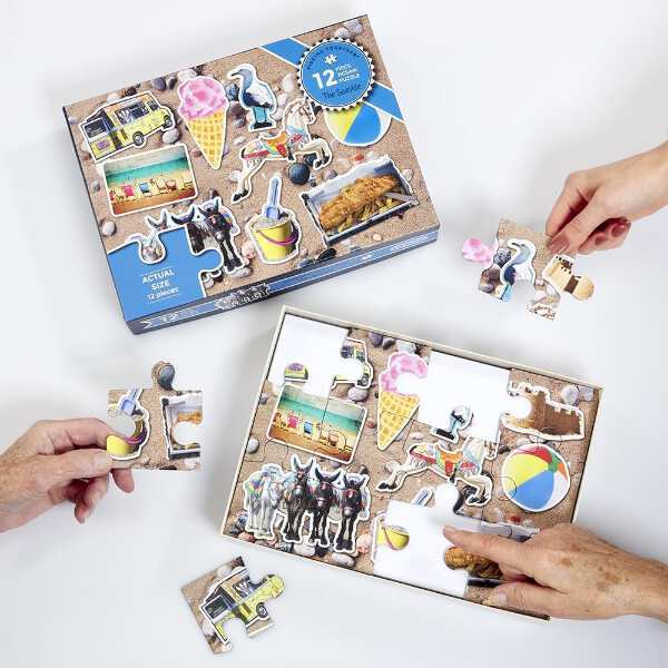 These jigsaws are designed to bring the joy and satisfaction of puzzling to those living with dementia, limited fine motor skills or visual impairments. The Seaside is a montage of images chosen specifically to evoke fond memories from years gone by to spark conversations with loved ones and reminisce around topics that may be long forgotten.