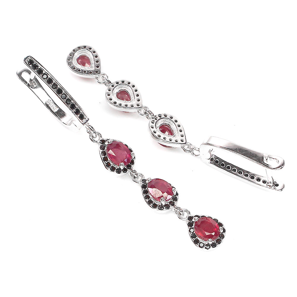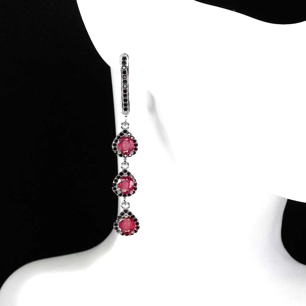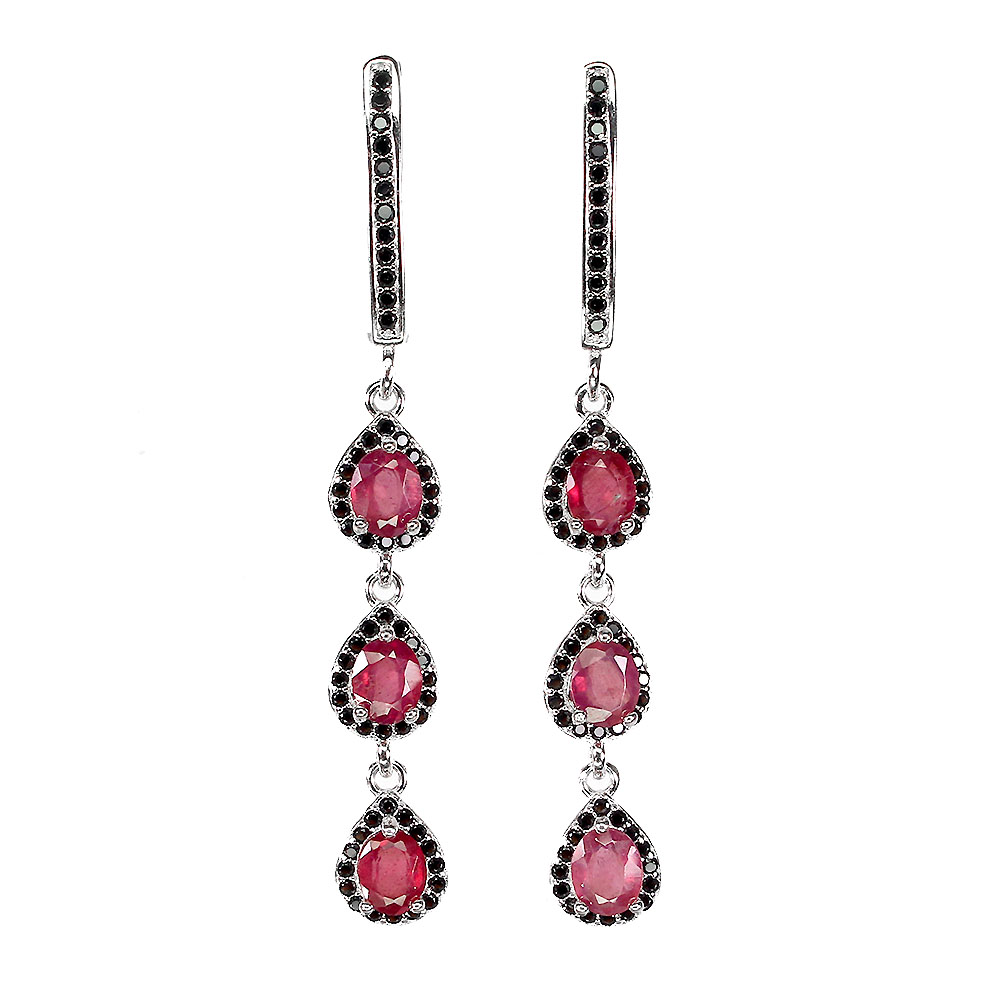 Heated Oval Red Ruby 5x4mm Black Spinel 925 Sterling Silver Earrings