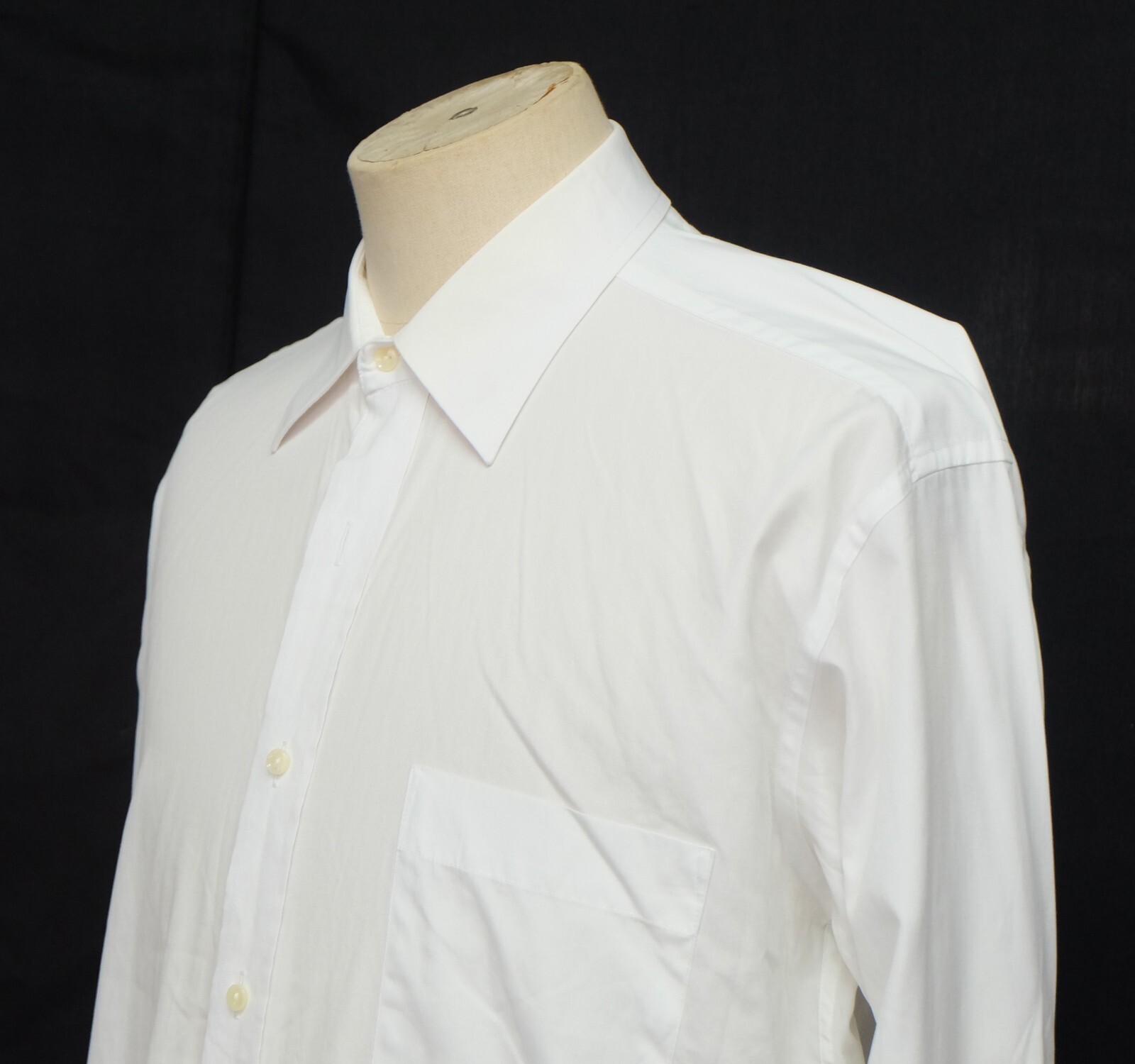 Awesome vintage 90's ISSEY MIYAKE im product white men's dress shirt authenticity guaranteed. Check out elegant designer shirt long sleeves with convertible cuff. It has point collar single chest pocket on left. 7 mother of pearl buttons closure on front. The color is white solid pattern, blend fabric is 85% cotton 15% polyester. The shirt is pre-owned still in excellent condition. It's already laundered clean and fresh ready to wear. Don't miss out gorgeous famous designer shirt.