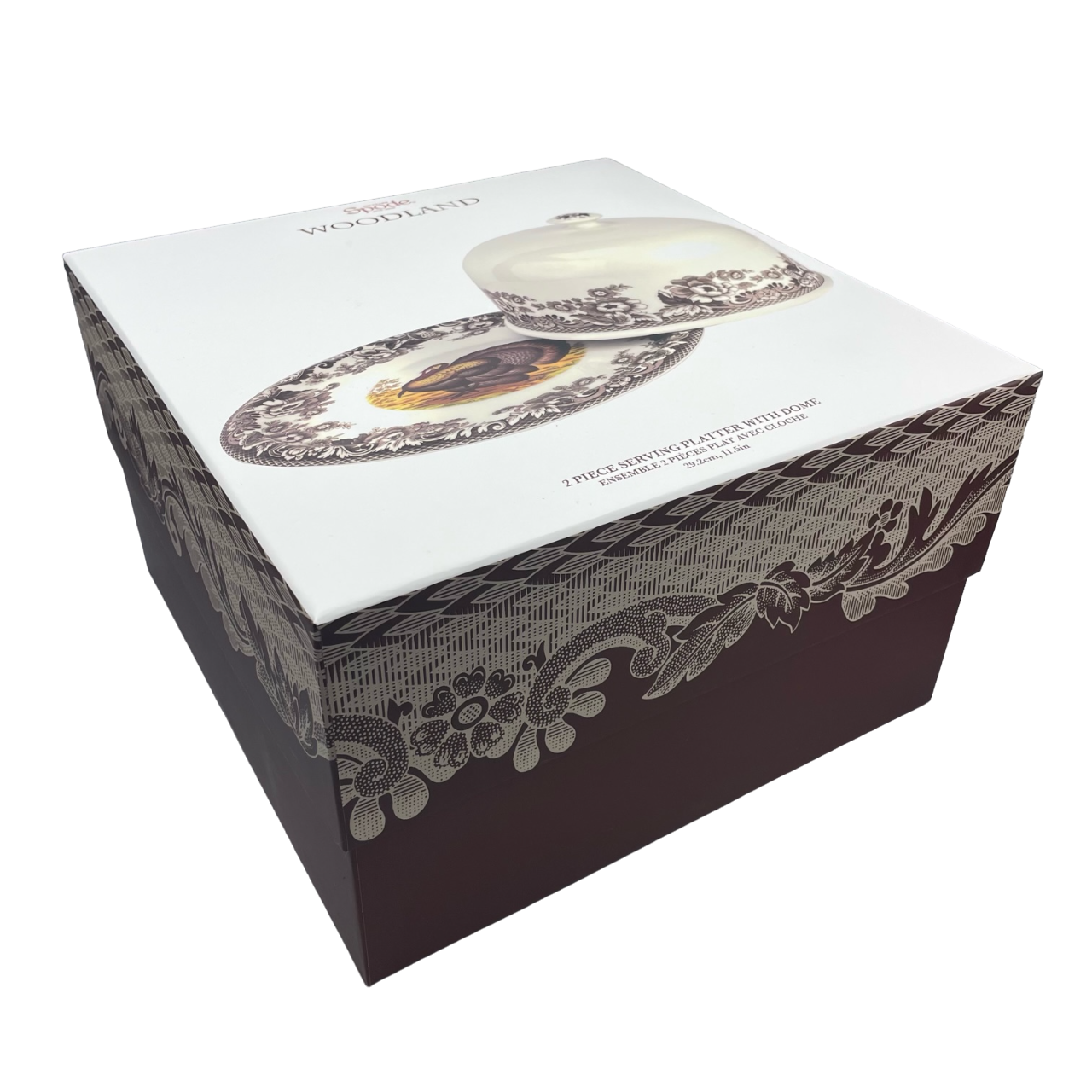 Offered is a 2pc. Serving Platter with Dome in the Woodland pattern by Spode.
