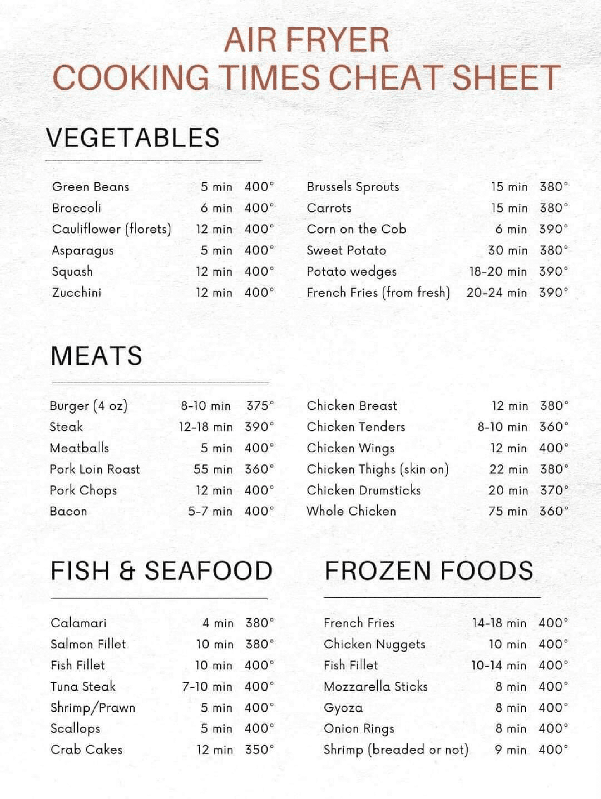 Air Fryer Cooking Times Cheat Sheet Kitchen Great Gift Idea Decal Sticker SINGLE 7X9 Inch Sticker S11762