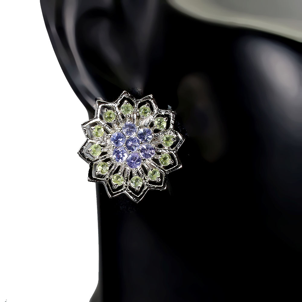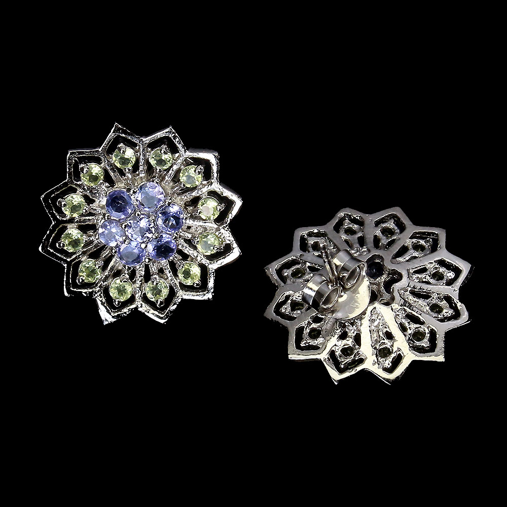 Unheated Round Blue Tanzanite 2.5mm Peridot 925 Sterling Silver Earrings