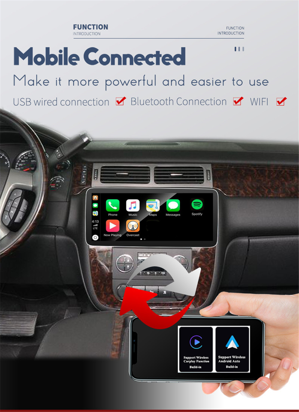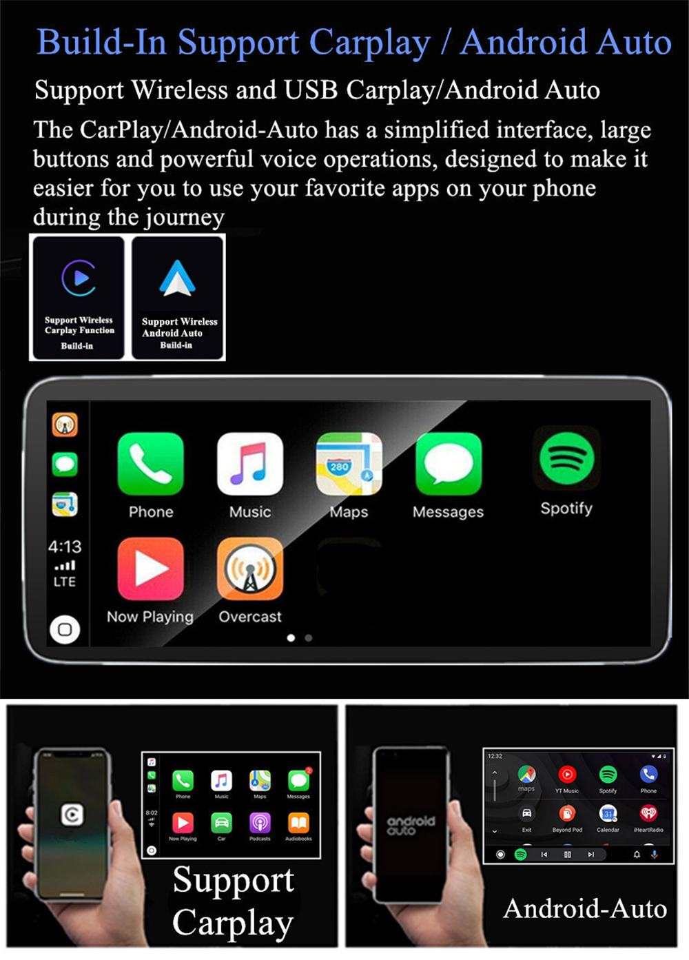 | Support Carplay/Android Auto | -Build-In Support WIFI Wireless / USB Wired Carplay And Android Auto. |