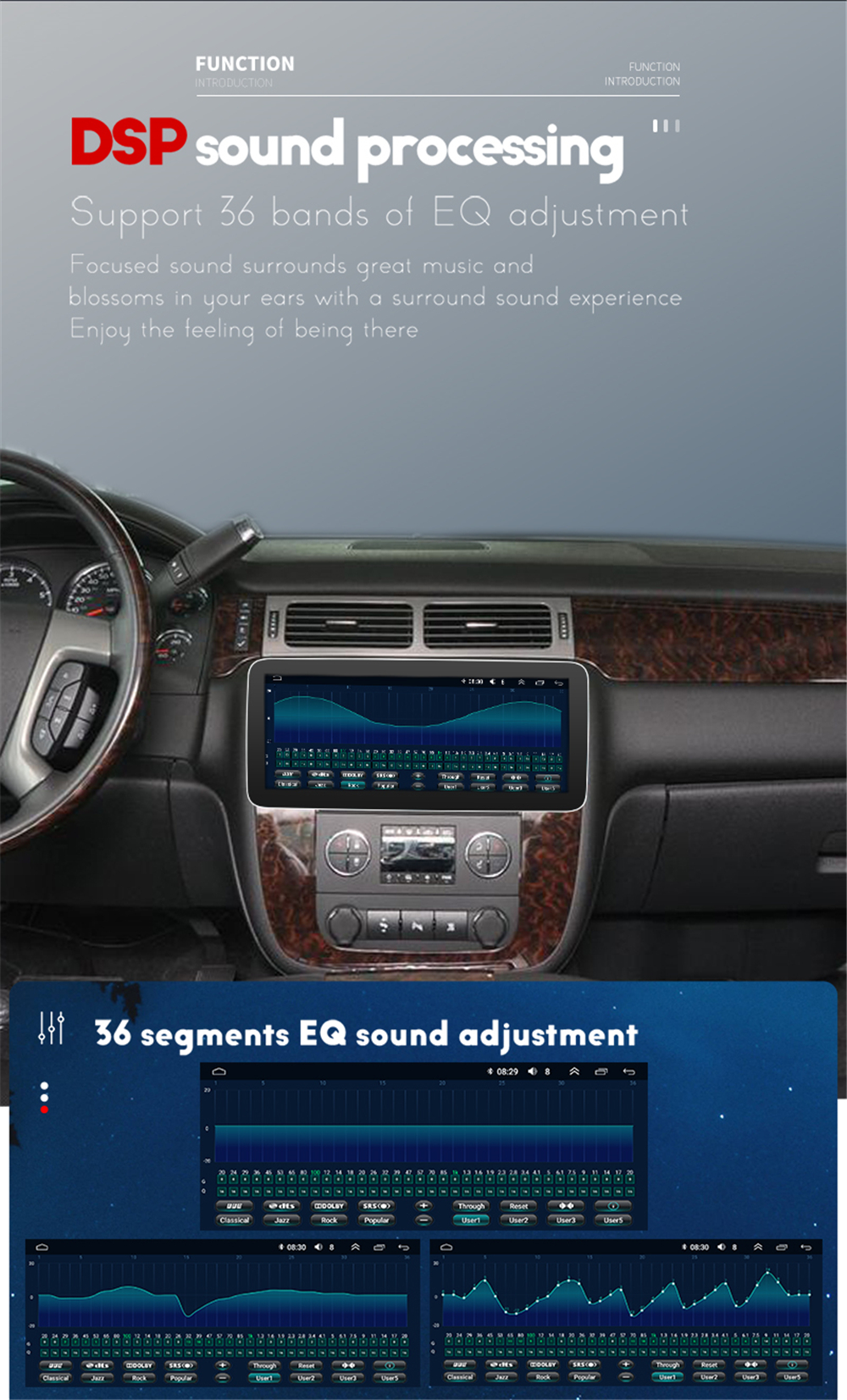 | DSP/EQ | Build-in DSP(dts/BBE/DOLBY/SRS...) ; 36EQ freely adjust |