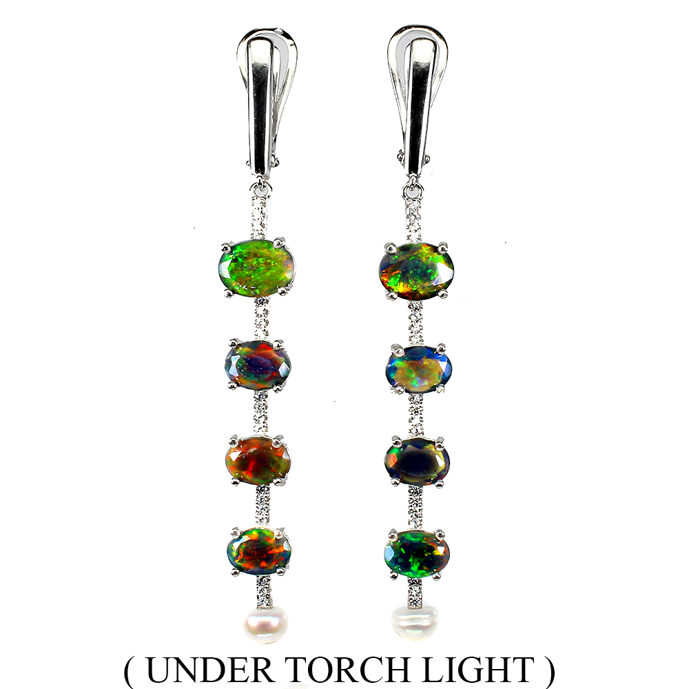Enhanced Oval Black Opal 7x5mm Pearl Simulated 925 Sterling Silver Earrings