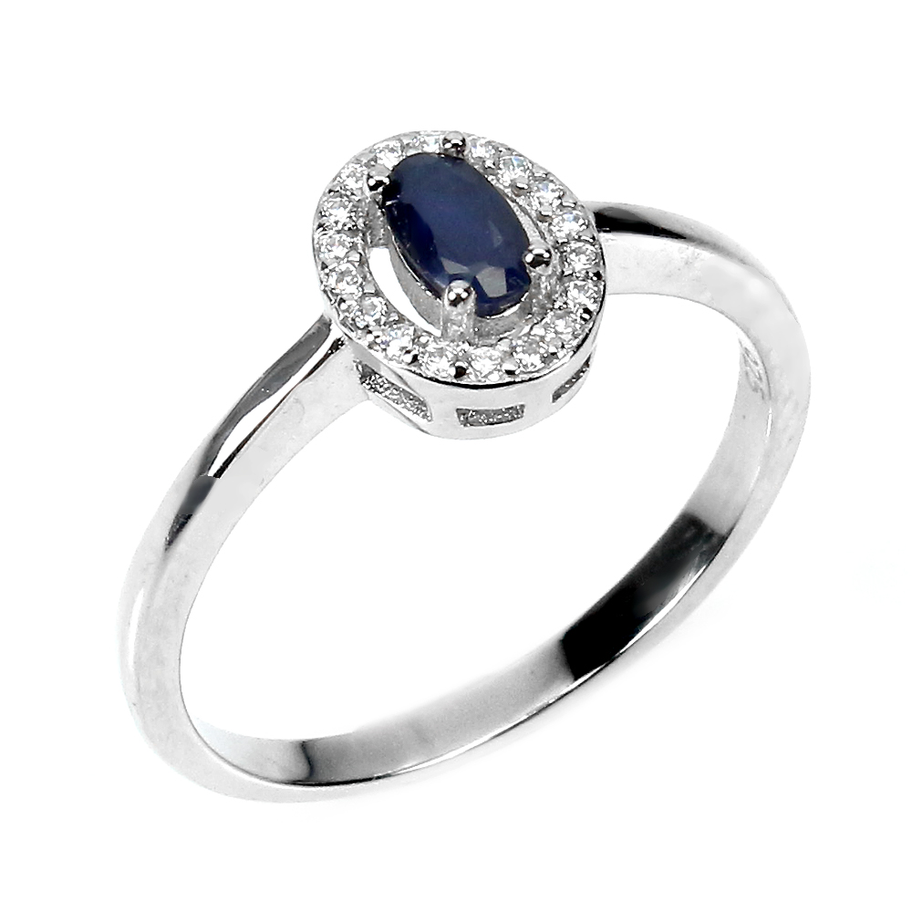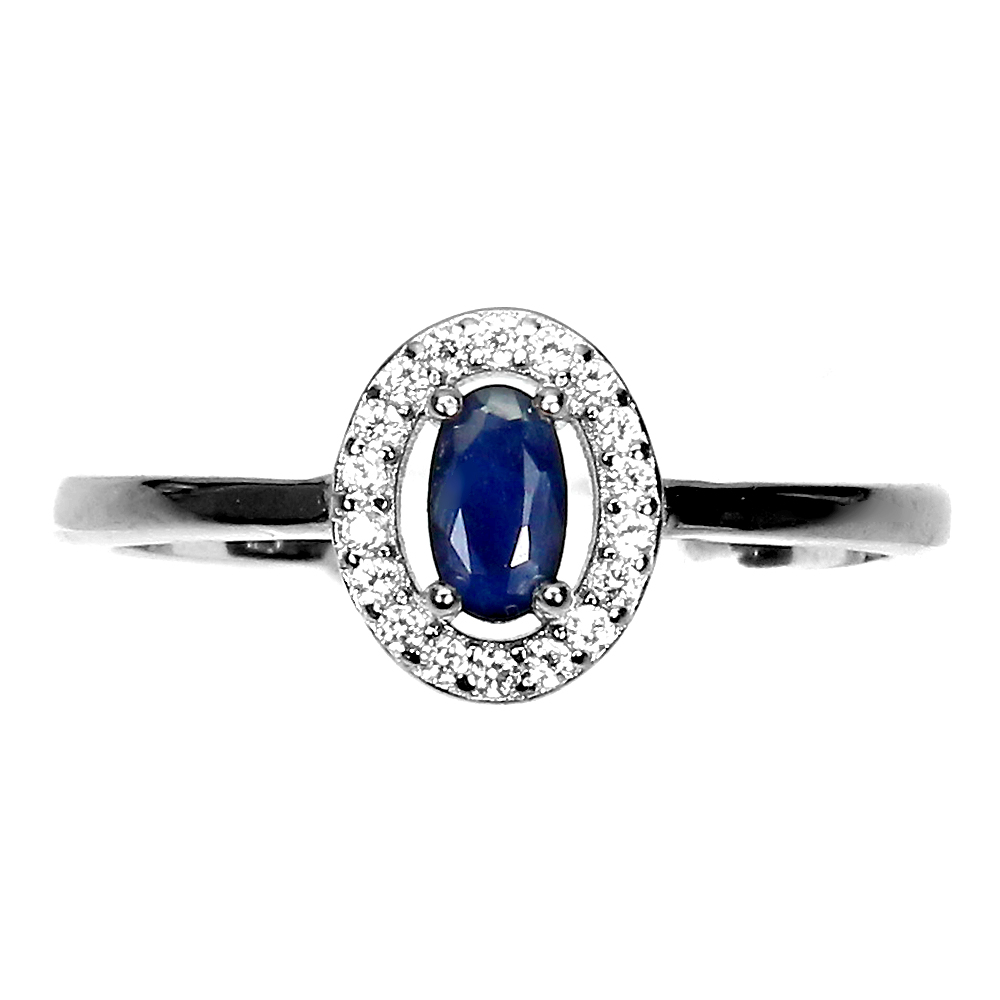 Diffused Oval Blue Sapphire 5x3mm Simulated Cz 925 Sterling Silver Ring Size 7.5