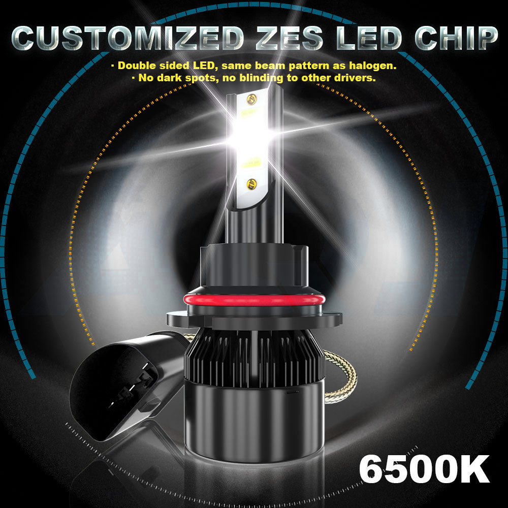 9007 HB5 LED Headlight Bulbs Kit 6000K-6500k White High Low Beam Light Bulbs 6000K-6500k