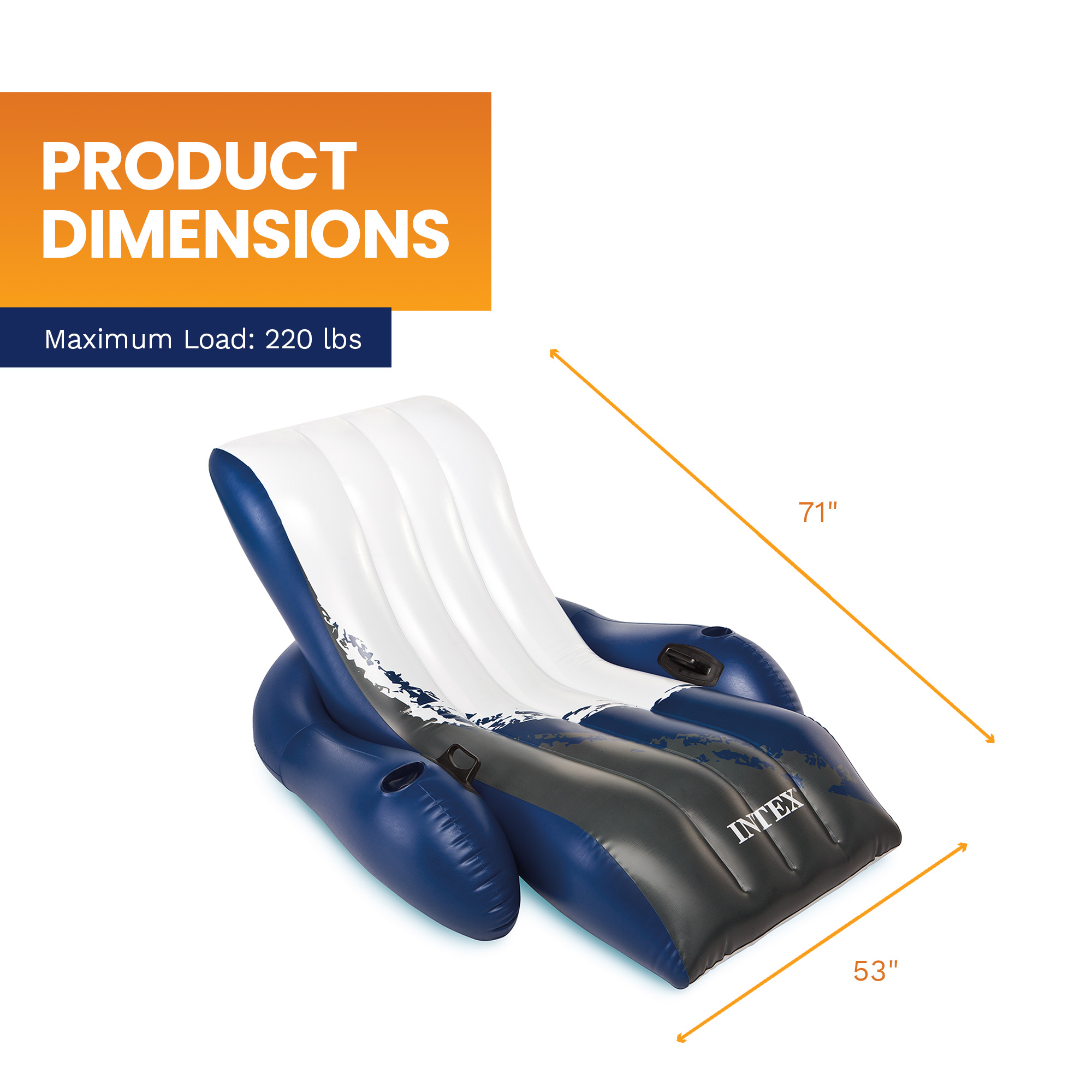 Catch some rays, hang out at the lake, take a nap in the sun, or just float around and relax. It's equipped with 2 cup holders in the armrests to keep your beverages at reach and 2 heavy-duty handles that make it easy to hold on and carry.