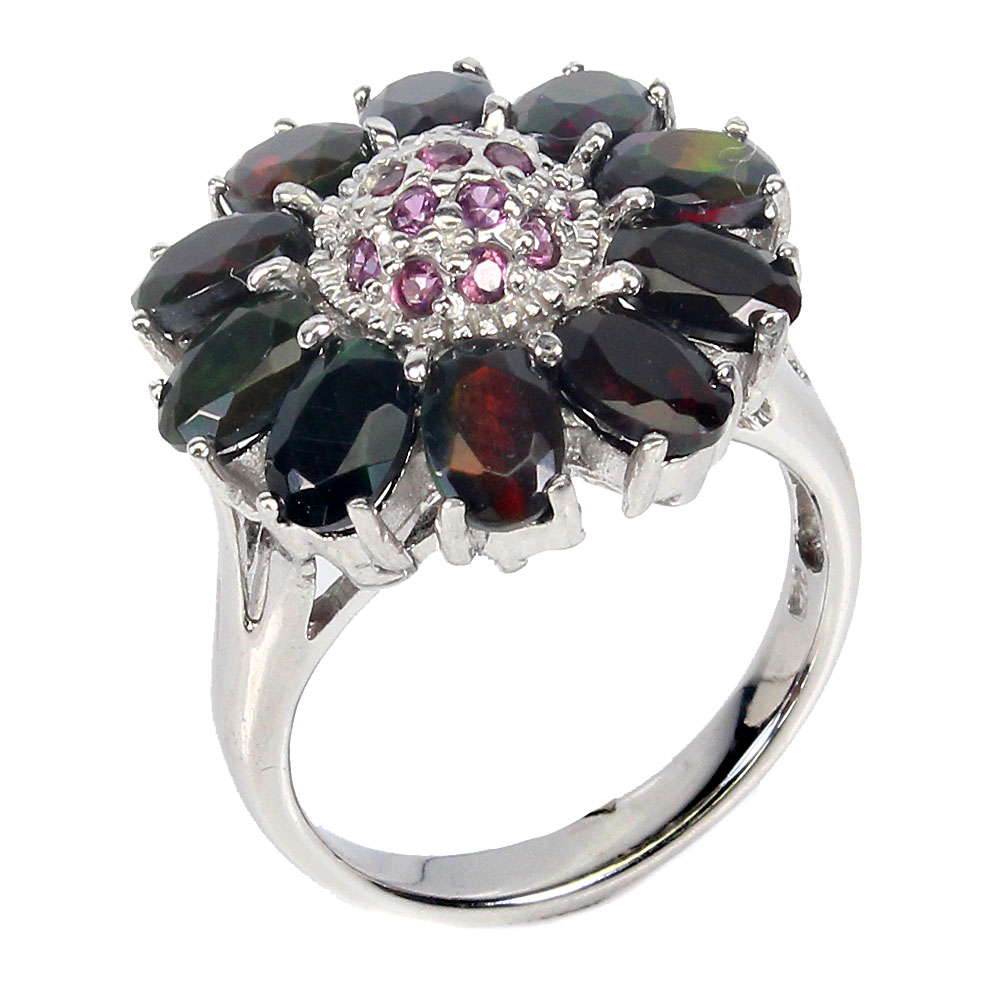 Clarity Enhanced Oval Black Opal Rhodolite Garnet 925 Sterling Silver Ring Size 8