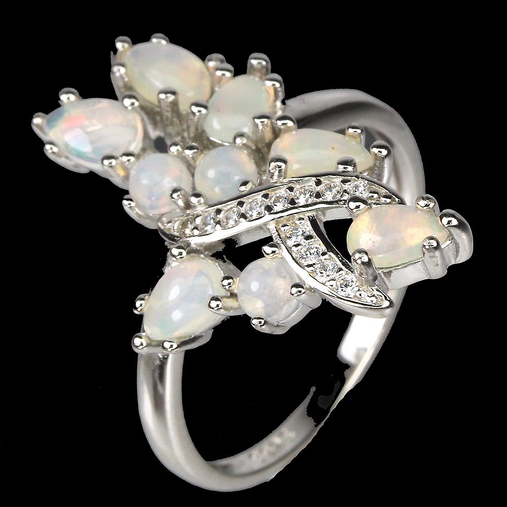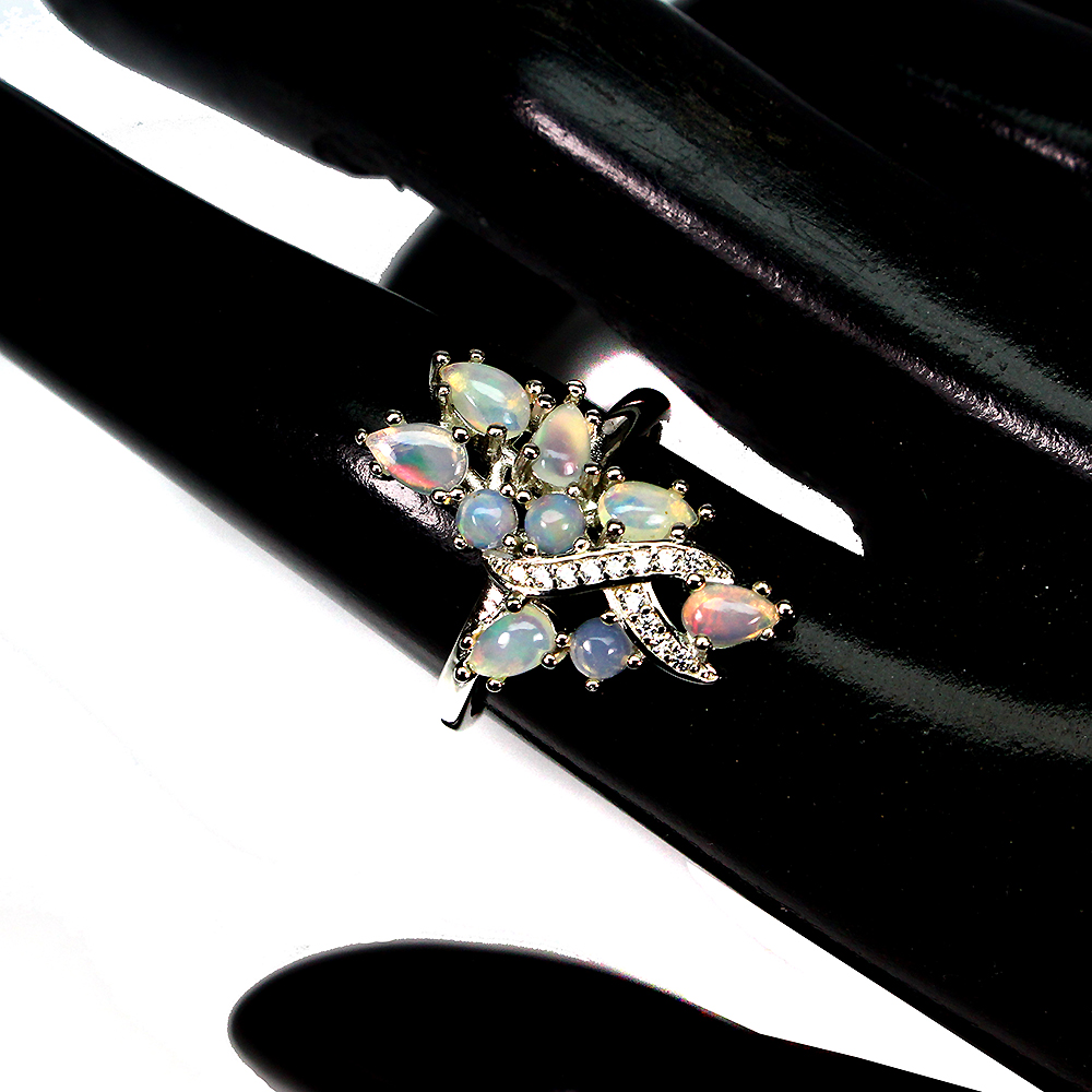 Unheated Pear Fire Opal Rainbow 5x3mm Simulated Cz 925 Sterling Silver Ring 8