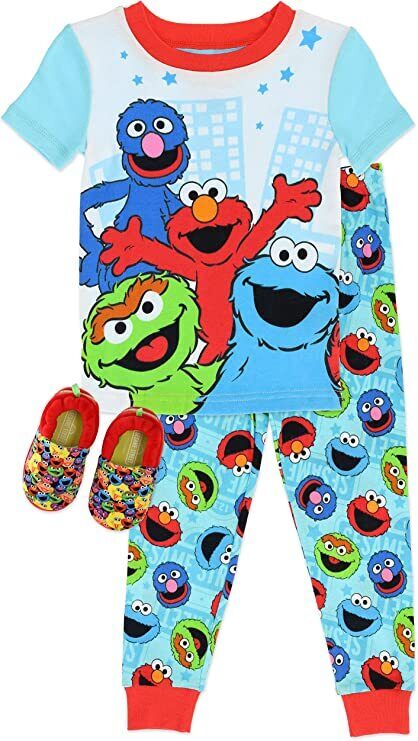 Type: 3pc Set, S/S Snug Fit Pajama Top, Pajama Pant W/ Elastic Waistband (Not Flame Resistant), 1 pair of Allover Character Print Slippers
