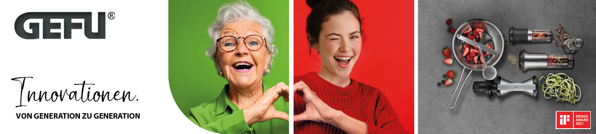 Wir, die Gefu GmbH, haben mehrere Auszeichnungen für unsere innovativen und hochwertigen Küchenwerkzeuge und -geräte erhalten, darunter den Red Dot Design Award, den German Design Award und den Plus X Award. Entdecken Sie unsere preisgekrönten Produkte und erleichtern Sie sich den Alltag in der Küche mit stilvollen und funktionalen Utensilien!