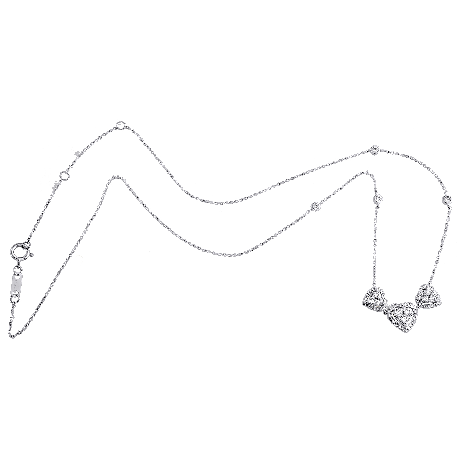 (2.8 gr. of 10K White Gold | Total Carat Weight: 0.75 ct. t.w. of White Diamonds | Chain Length: 18" | Charm Width: 1" | Chain Width: 1mm | Pendant Thickness: 3.25mm | Clarity: SI2 - I1 | Color: H - I | Women's Genuine Round Diamond Triple Heart Chain Statement Necklace)