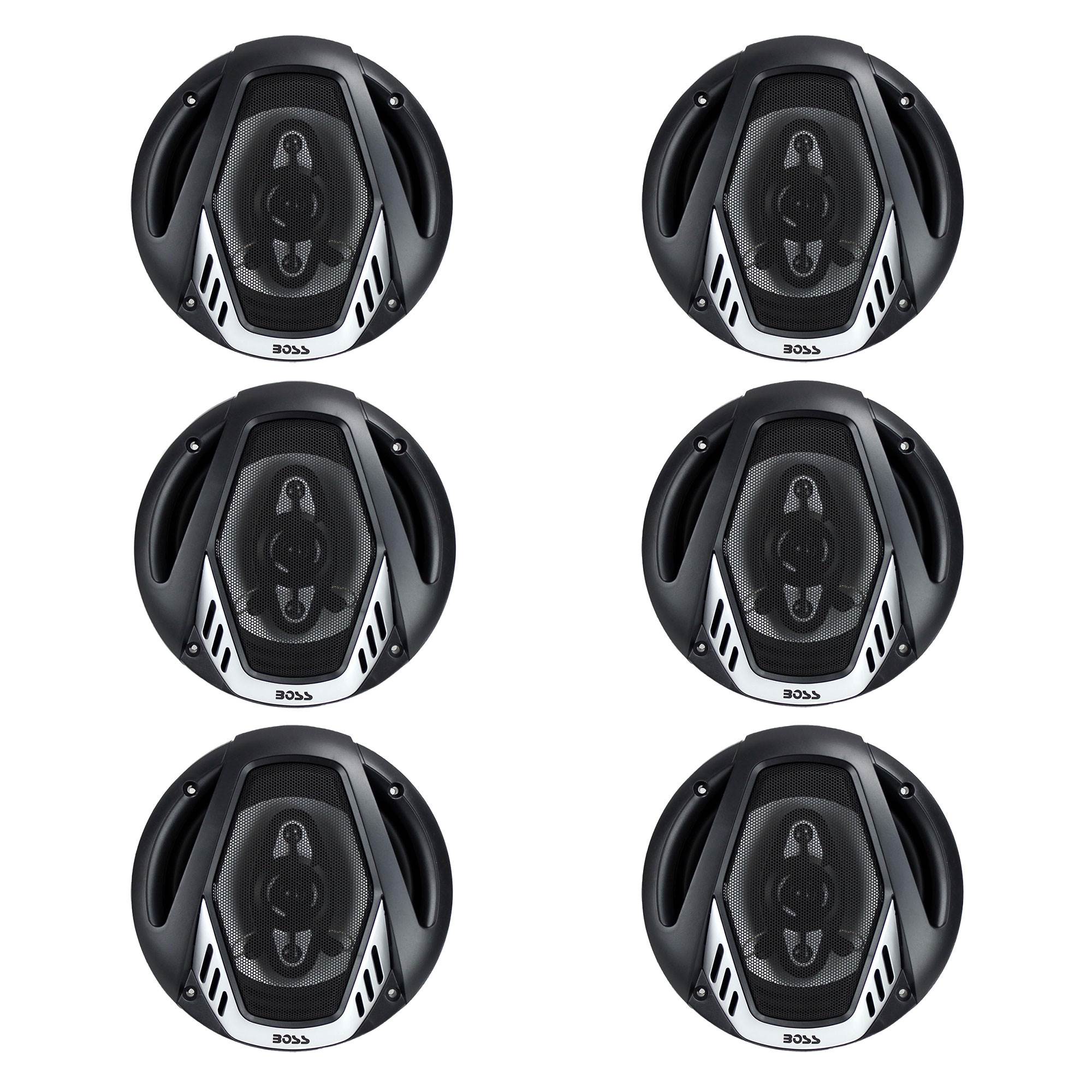 The Boss NX654 6.5" car audio 4-way speakers feature a MAX power of 400 watts at 4-ohm impedance. Other features include a stamped steel basket and a poly injection cone material with two Mylar cone tweeters. Replace your factory speakers with the Boss NX654 6.5" 4-way speakers.
