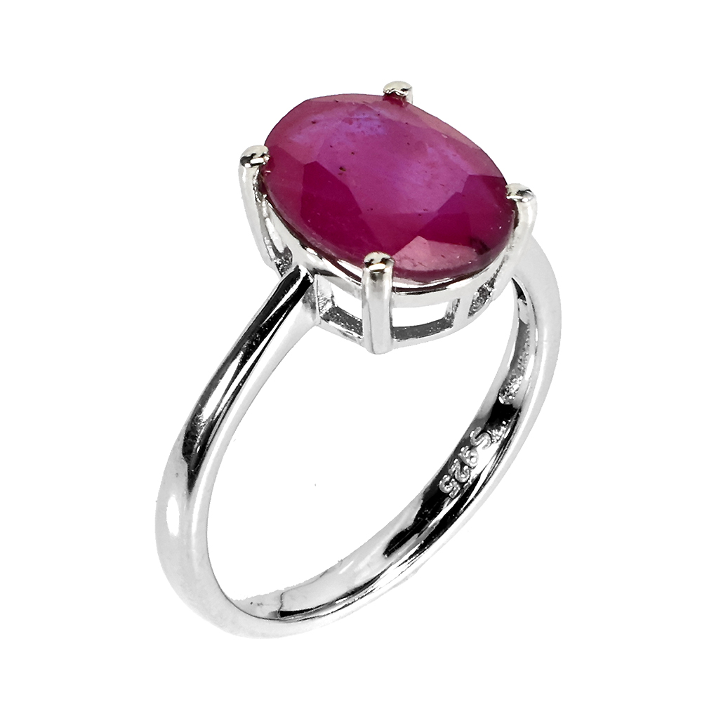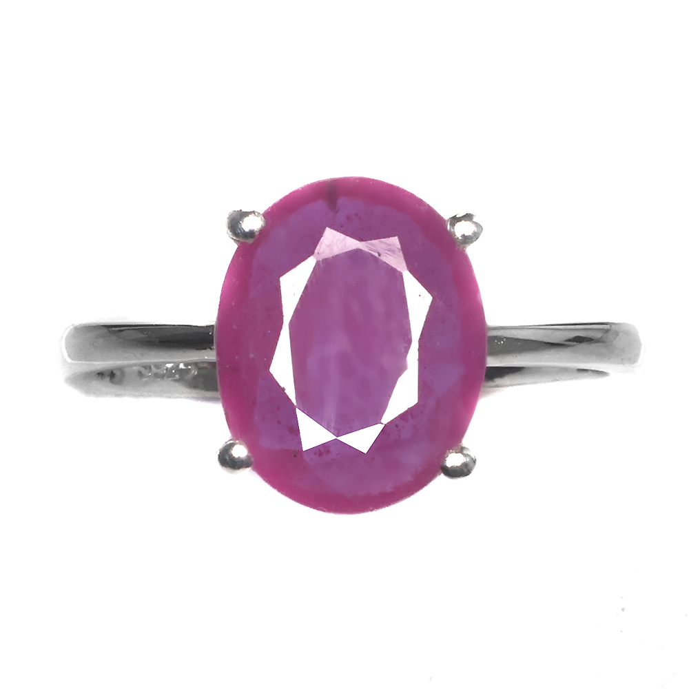 Heated Oval Red Ruby 11x9mm 14K White Gold Plate 925 Sterling Silver Ring 7.5