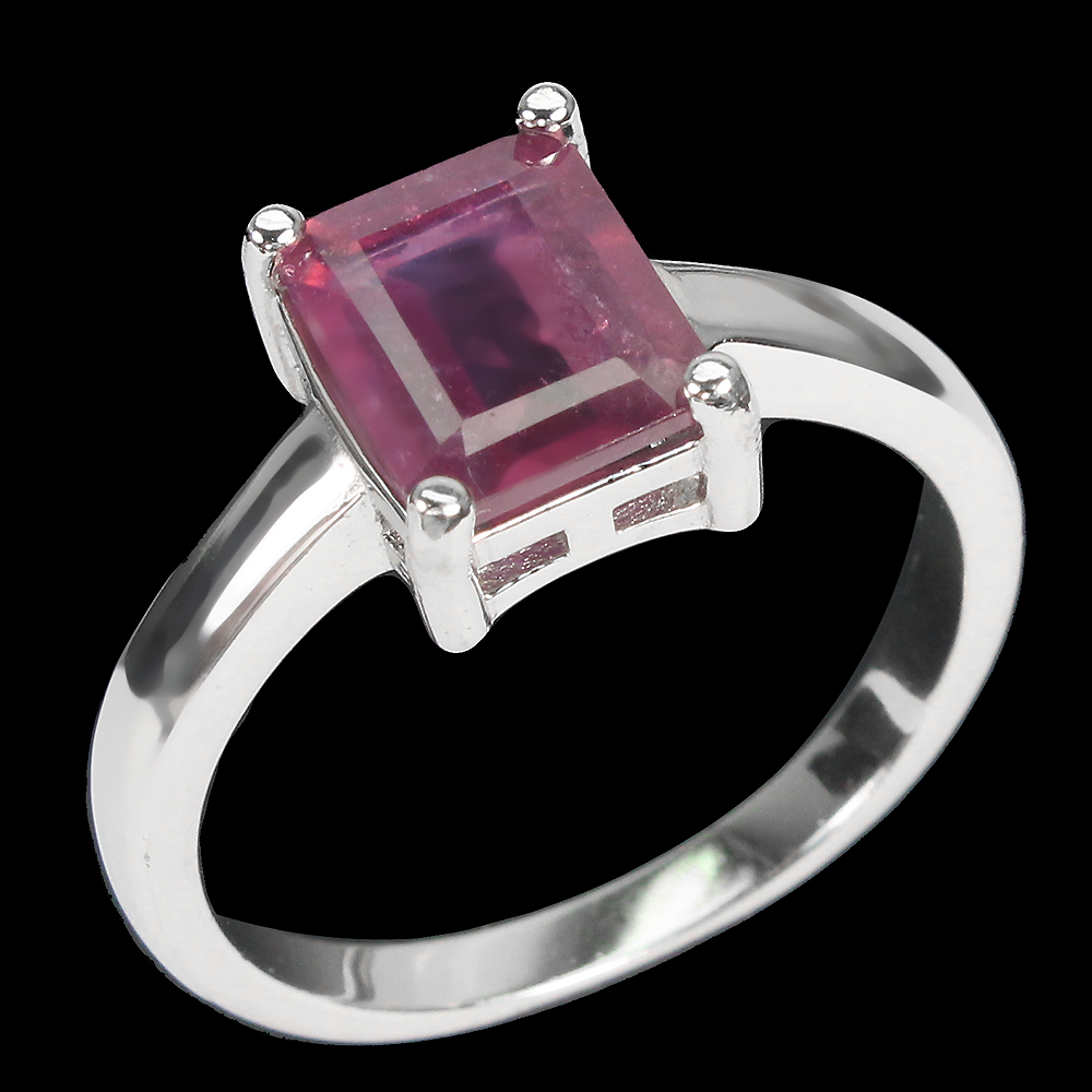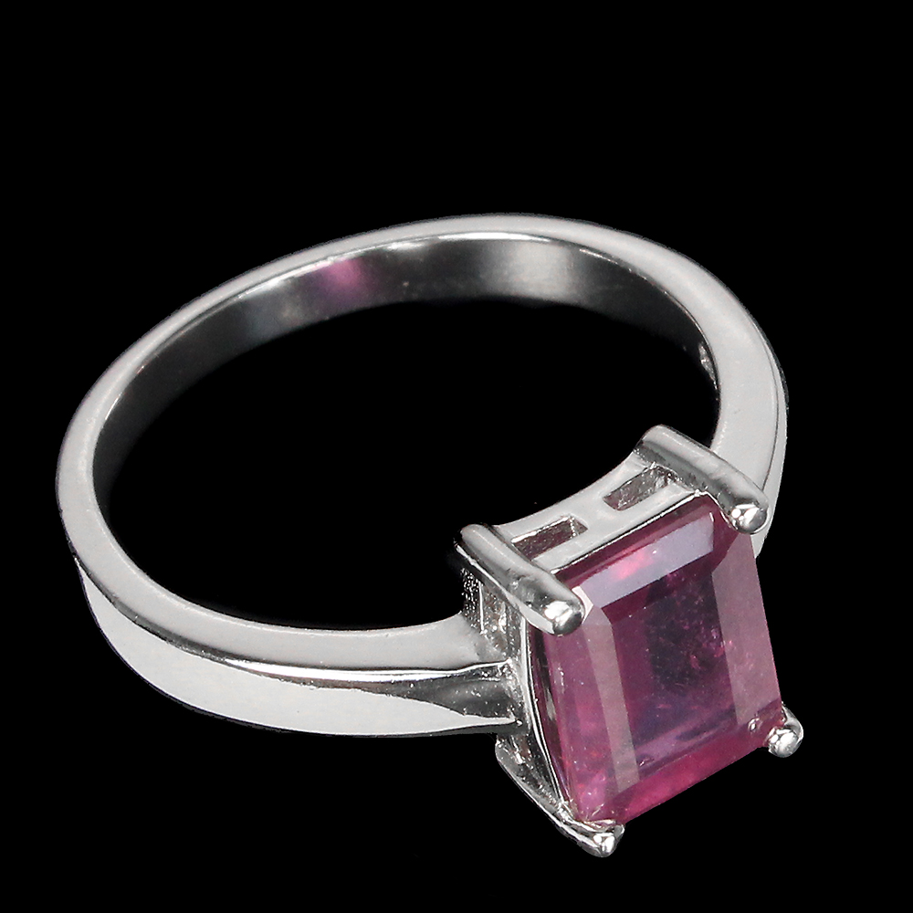 Heated Octagon Red Ruby 9x7mm 14K White Gold Plate 925 Sterling Silver Ring 7.5