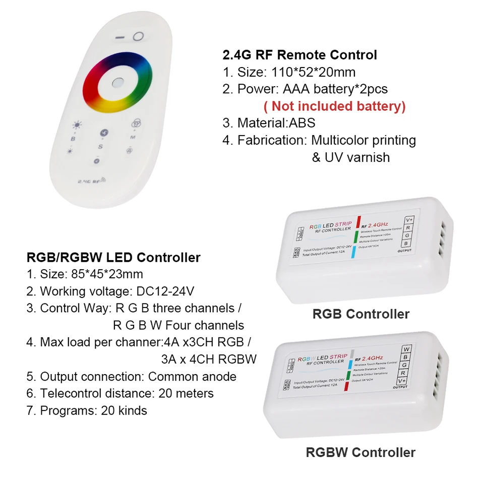 5m RGB/RGBW/RGBWW LED Strip with 2.4G RF Touch controller Kit: