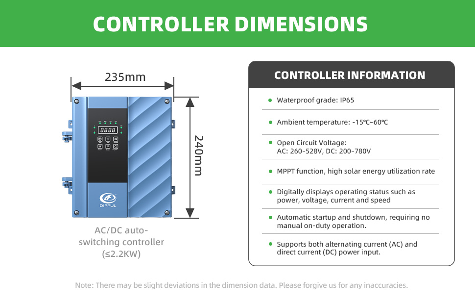 1. Can work with not only DC solar power, but also AC electricity. The controller can auto-switching from AC to DC power.