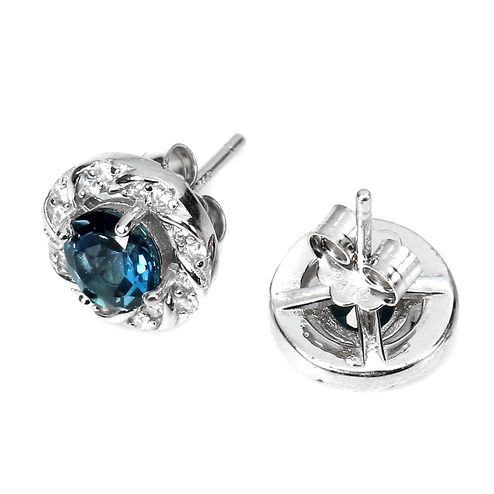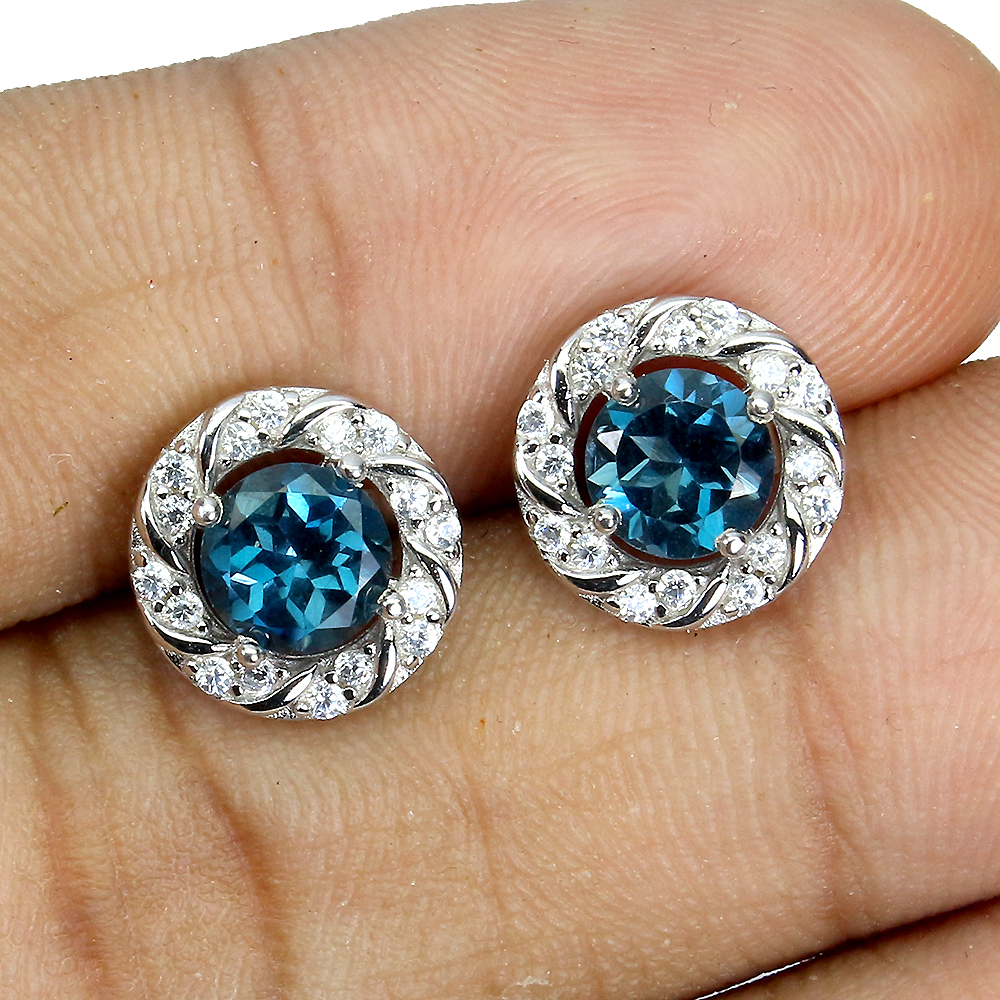 Irradiated Round London Blue Topaz 6mm Simulated Cz 925 Sterling Silver Earrings