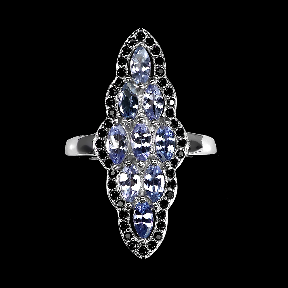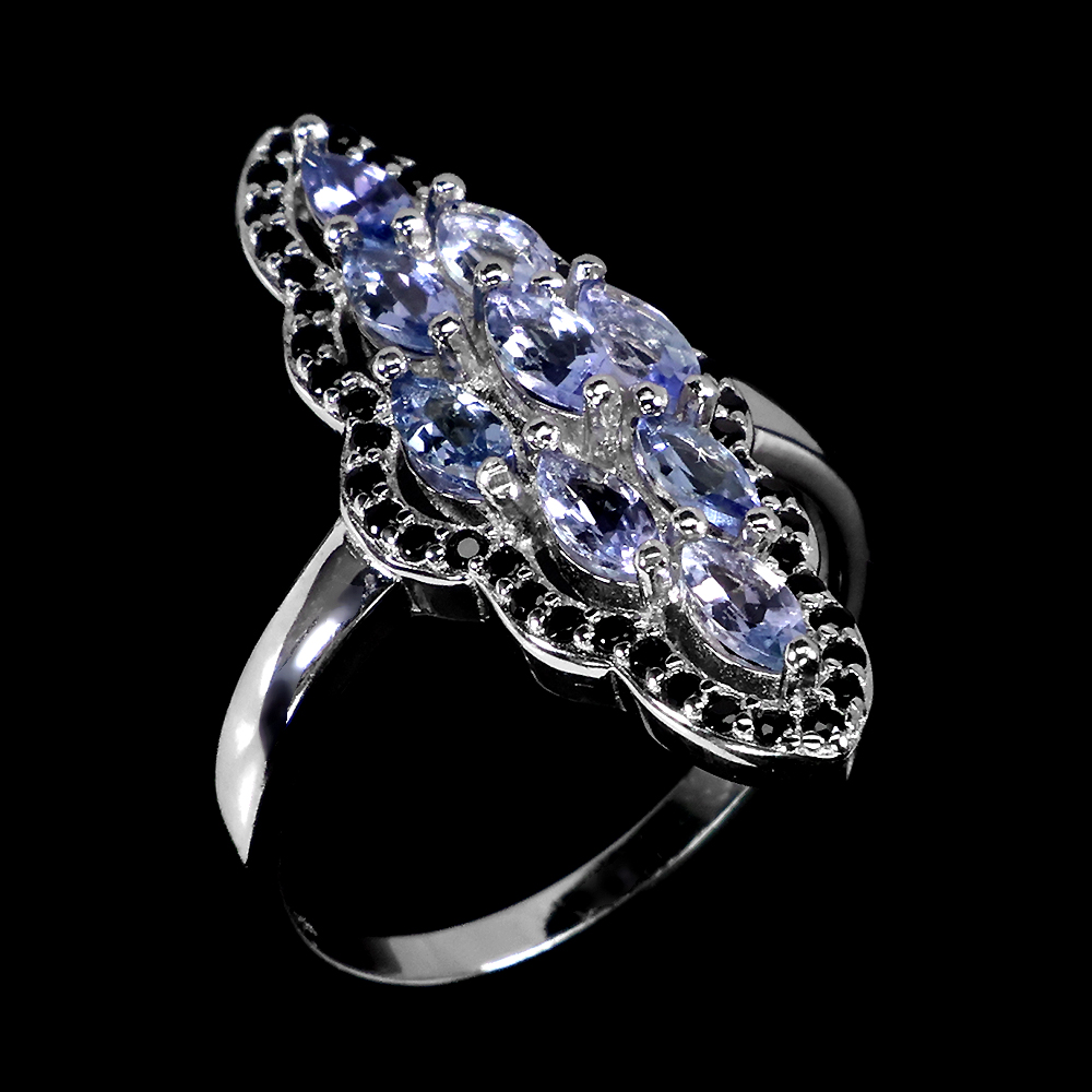 Unheated Marquise Tanzanite 5x2.5mm Black Spinel 925 Sterling Silver Ring Size 8