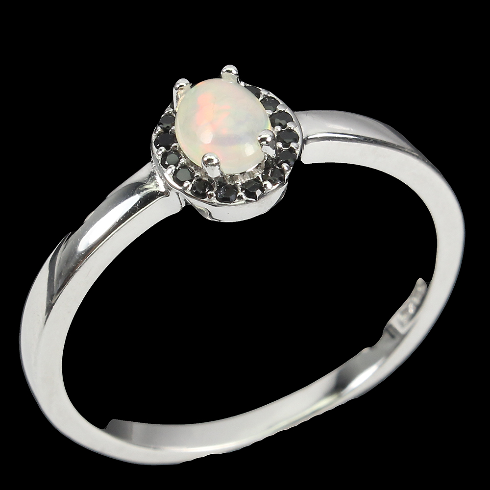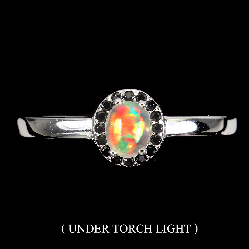 Unheated Oval Fire Opal Rainbow 5x4mm Black Spinel 925 Sterling Silver Ring 9