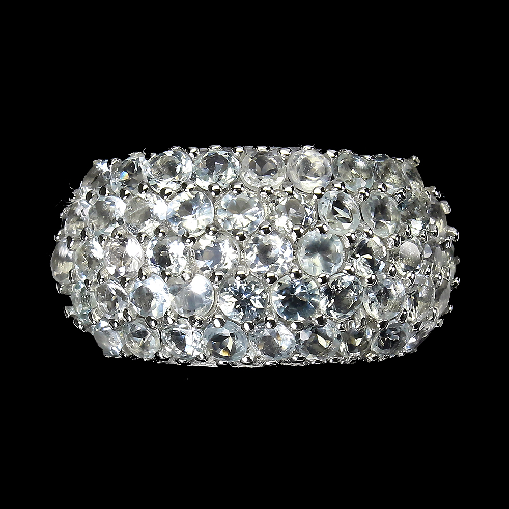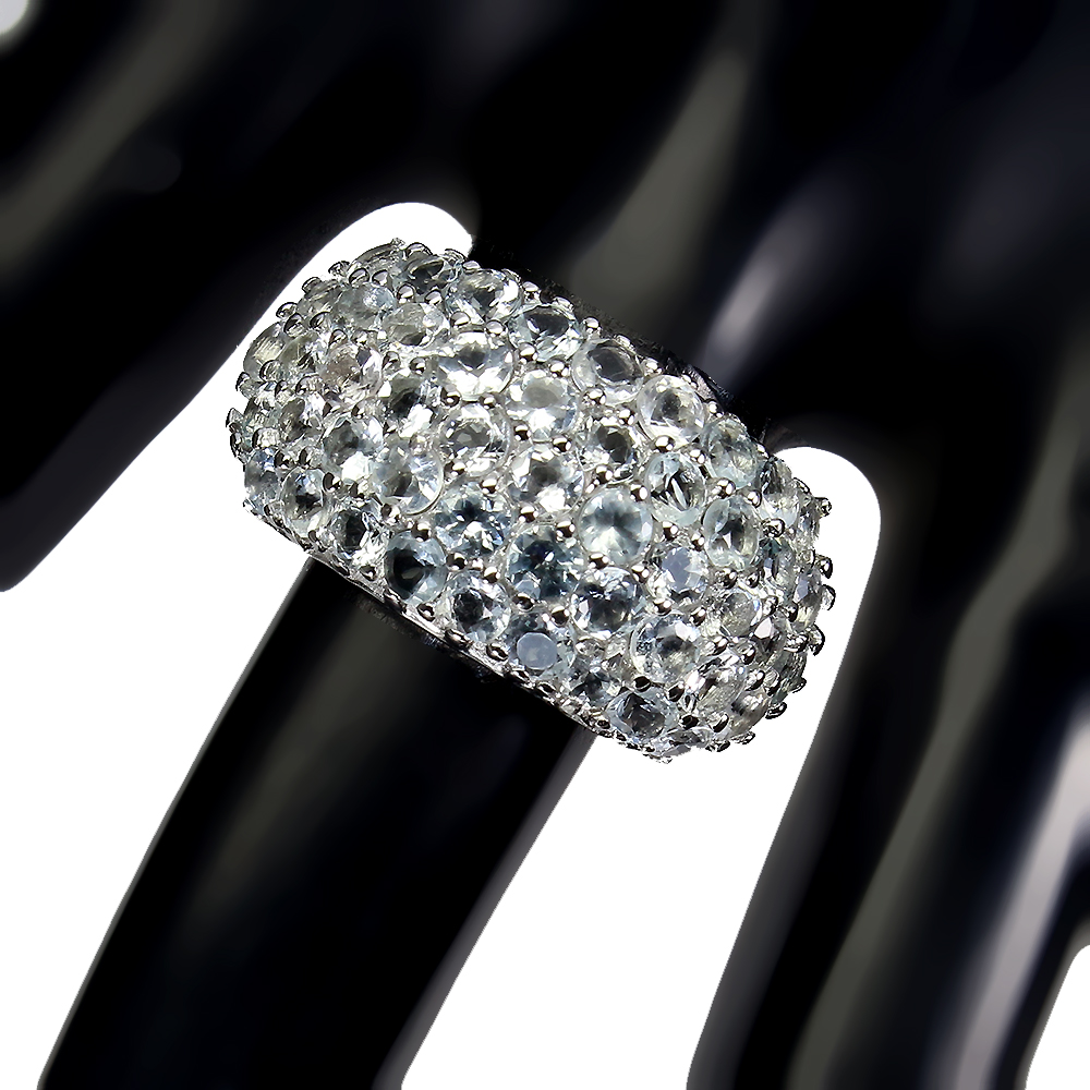 Unheated Round Aquamarine 3mm 14K White Gold Plate 925 Sterling Silver Ring 9