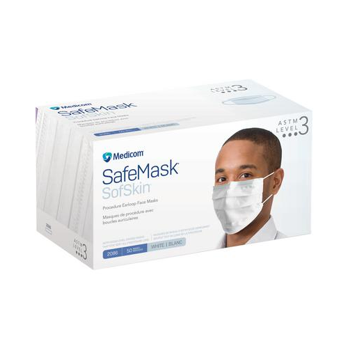 SafeMask SofSkin Earloop Face Mask, ASTM Level 3, White, 50/box .