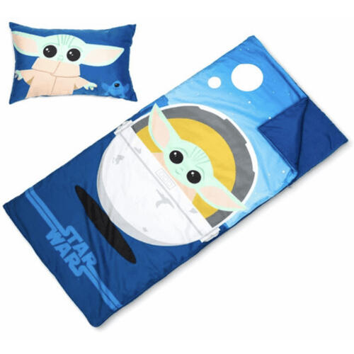 Description This Star Wars: The Mandalorian slumberbag is the perfect gift for any young fan. The Child (Grogu) is here to help your child fall in love with nap time. This amazing slumberbag set includes a slumberbag and a rectangular pillow. The sleeping bag measures 54 long by 27 wide. Everything in this set is made out of 100% polyester. Spot clean only. Lay flat to dry. Specifications Dimensions (Overall): 54 Inches (L) 27 Inches (W) Weight: 1.25 Pounds Dimensions (Packed): 10 Inches (W) x 13 Inches (L) Sleeping Bag Style: Rectangle Recommended Capacity: 1 Person Suggested Age: 3 Years and Up Shell Material: Polyester Liner Material: Polyester Fill Material: 100% Polyester Lowest temperature rating Fahrenheit: 65 Care & Cleaning: Machine Wash Machine Dry